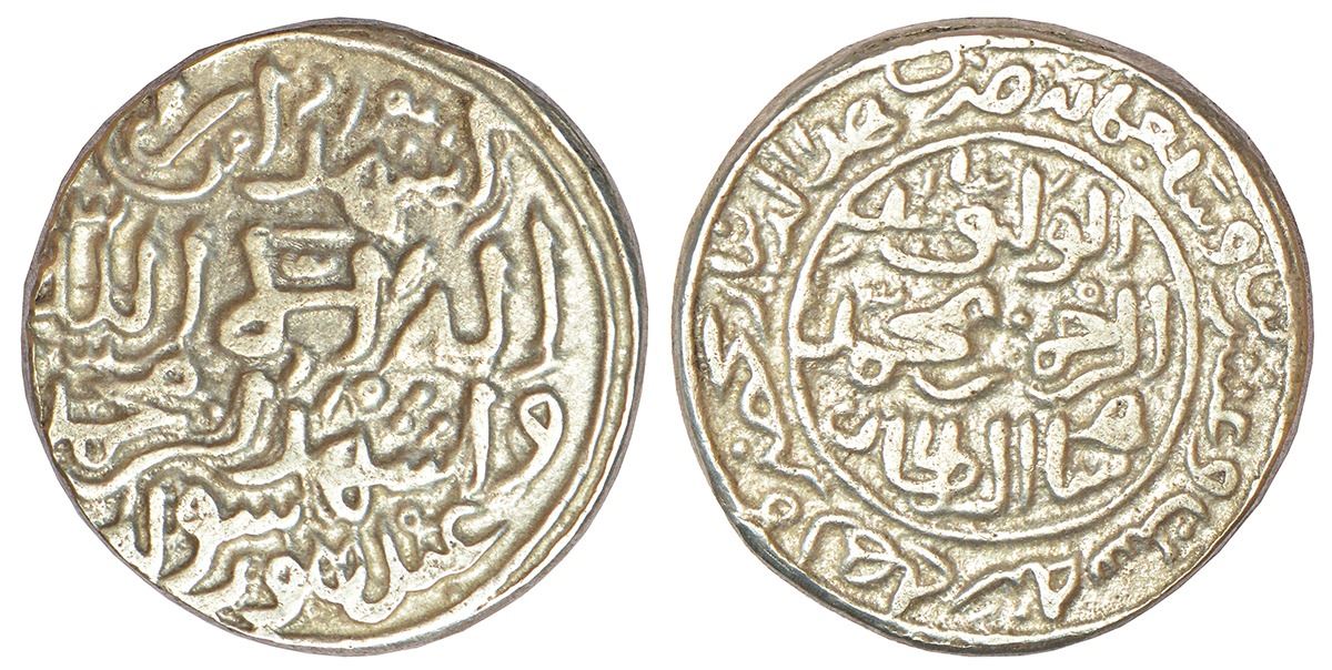 Sultans of Delhi, Tughluqs, Silver adli of Muhammad Bin Tughluq (1325-1351 AD), Hadrat Delhi mint, AH 726, 'al-wathiq' type, G&G D364, 9.42g. Obv: Shahada ashhad an la illah illa allah wa ashhad an muhammad 'abduhu wa rasuluhu. Rev: In circle,Arabic legend al-wathiq bi-ta'yid al-rahman muhammad shah al-sultan with complete date and mint details in margin.