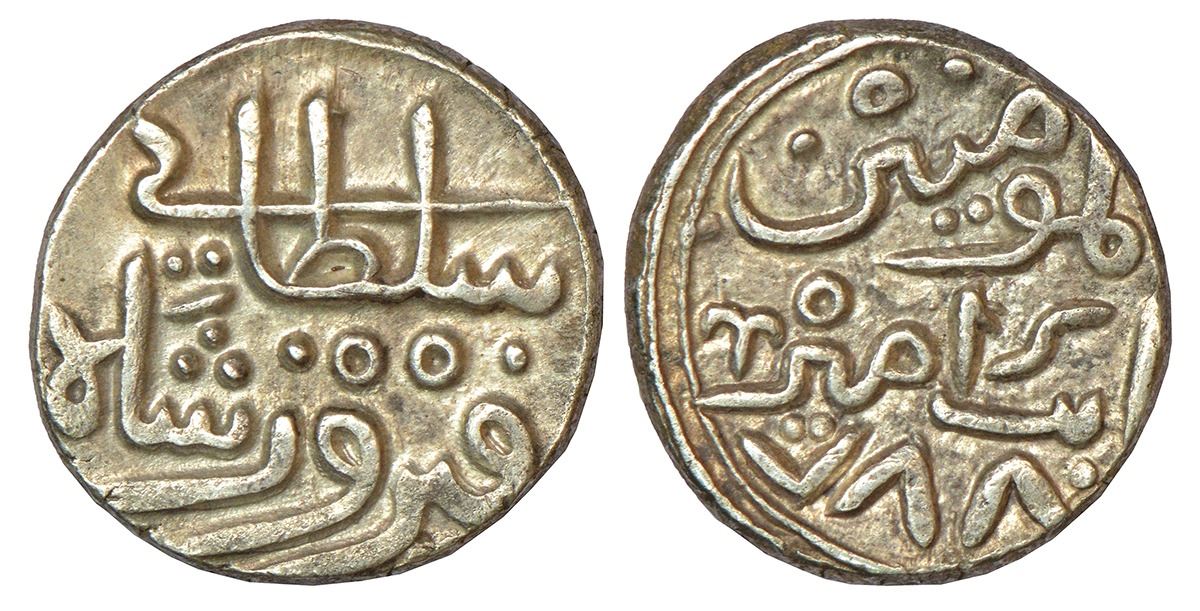 Sultans of Delhi, Tughluqs, silver tanka of Firuz Tughlaq (1352-1390 AD), AH 788, G&G D471, 10.98g. Obv: Arabic legend Firuz Shah Sultani. Rev: Arabic legend Nayab Amir al-Mumineen and AH date in numbers.