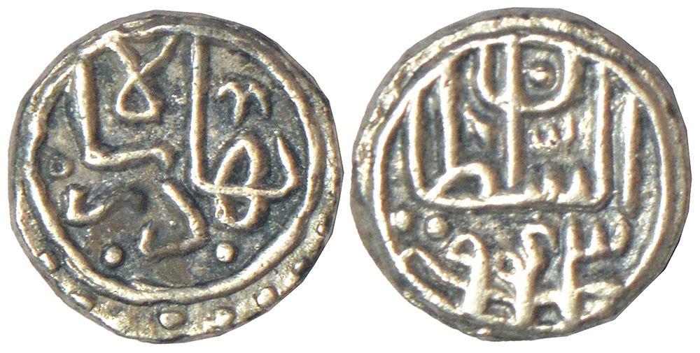 Sultans of Gujarat, Silver 1/6 tanka of Qutb al-Din Bahadur Shah (1526-1537 AD), AH 943, G&G G356, 1.02g. Obv: Arabic legend bahadur shah. Rev: Arabic legend al-sultan sanah 943; both sides legend within circle.