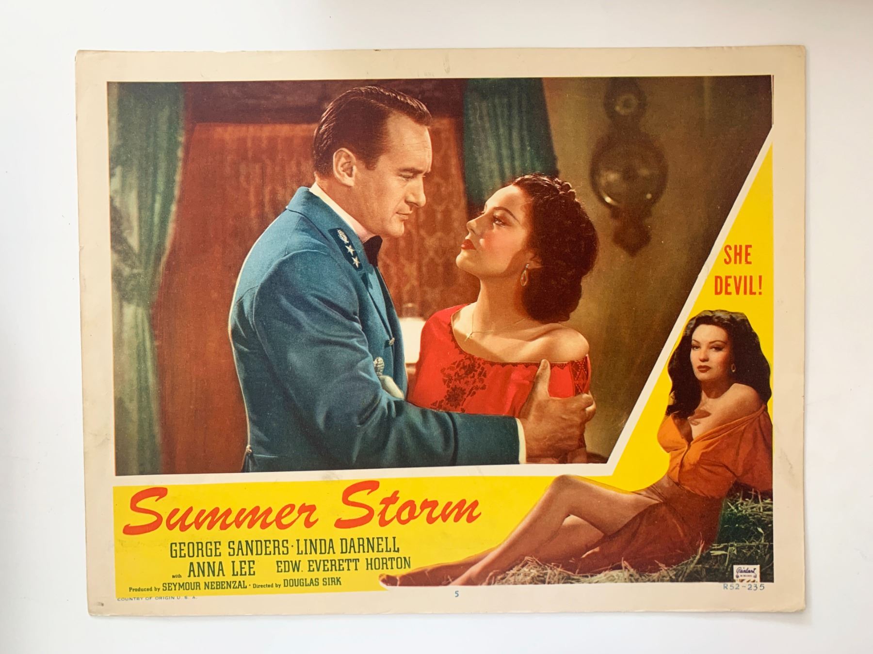 Summer Storm original 1952R vintage lobby card on heavy card stock. 11x14 inches