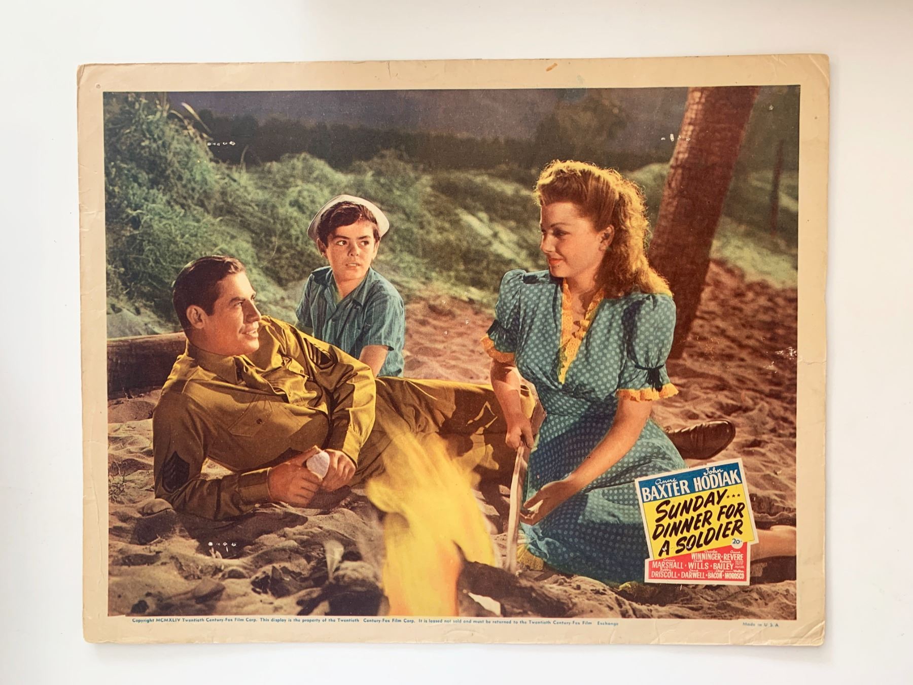 Sunday Dinner for a Soldier original 1944 vintage lobby card on heavy card stock. 11x14 inches