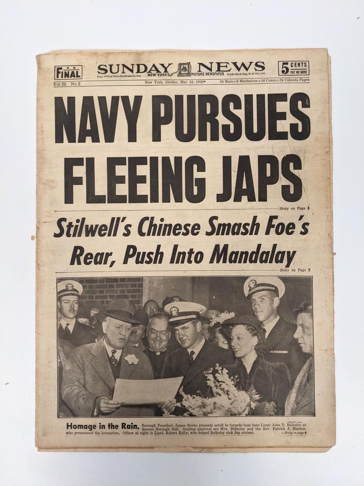 Sunday News 1942 Vintage Newspaper. May 10 1942. NAVY Pursues Fleeing Japs. 12x16 inches