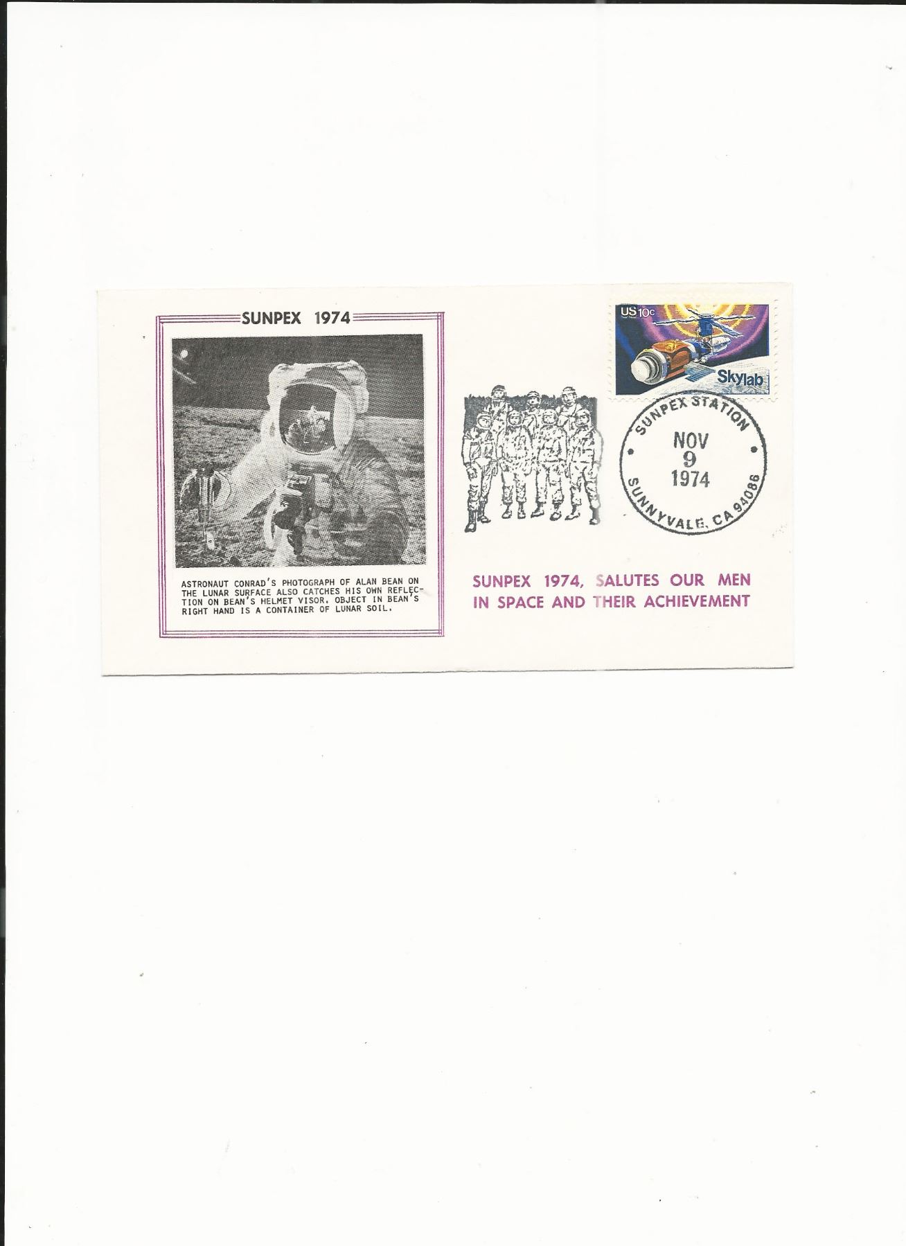 Sunpex Salutes Our Men in Space and Their Achievement - First Day Cover - November 9th, 1974 - Sunnyvale, CA