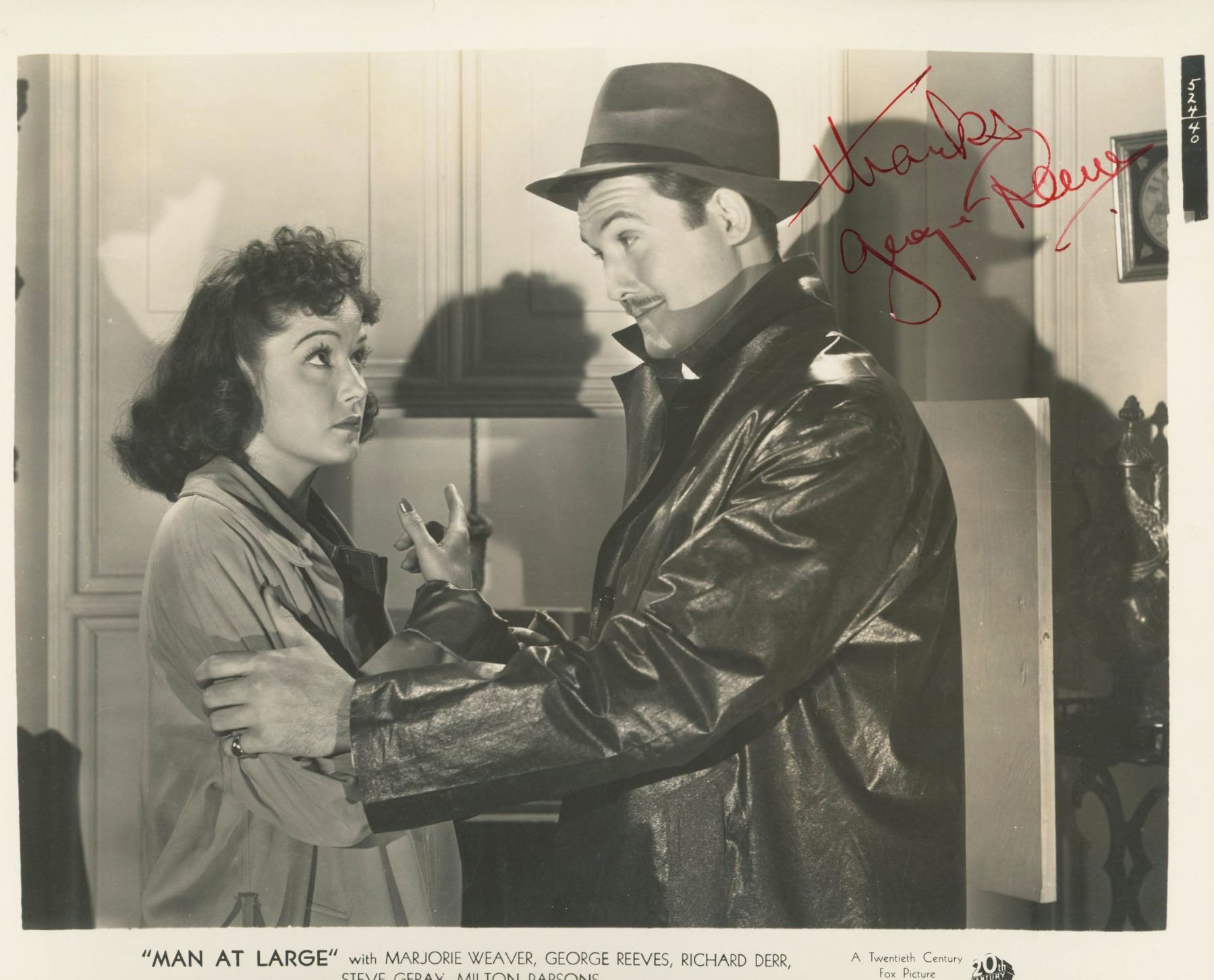 Man at Large signed movie photo autographed by George Reeves. 8x10 inches