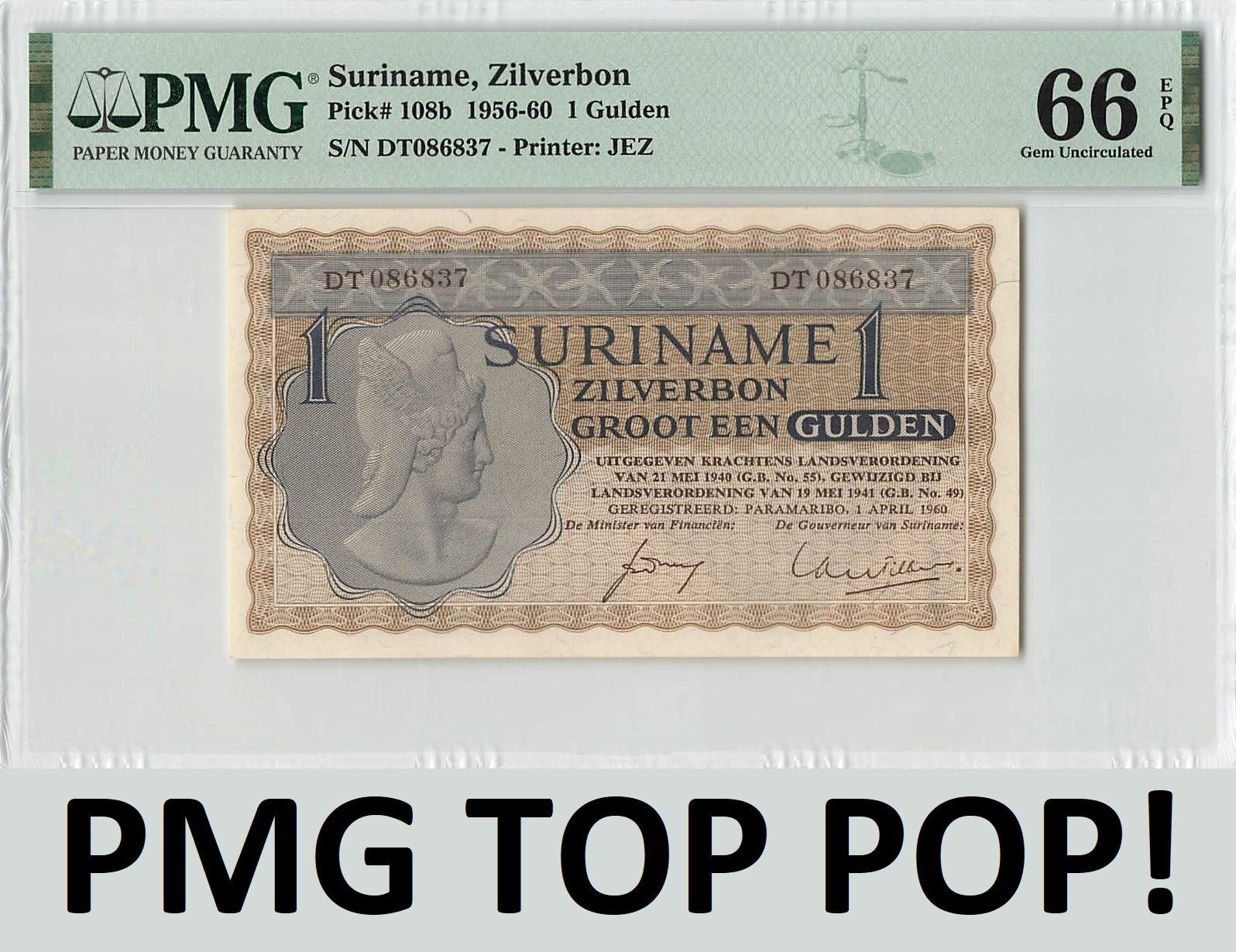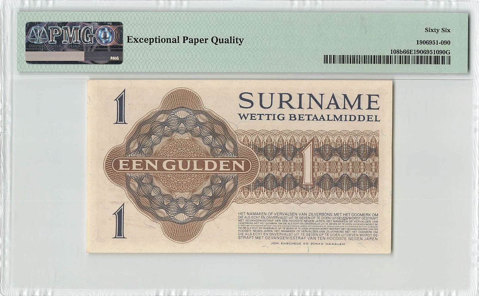 Suriname 1 Gulden 1960 JEZ Pick 108b PMG Gem Uncirculated 66 EPQ TOP POP