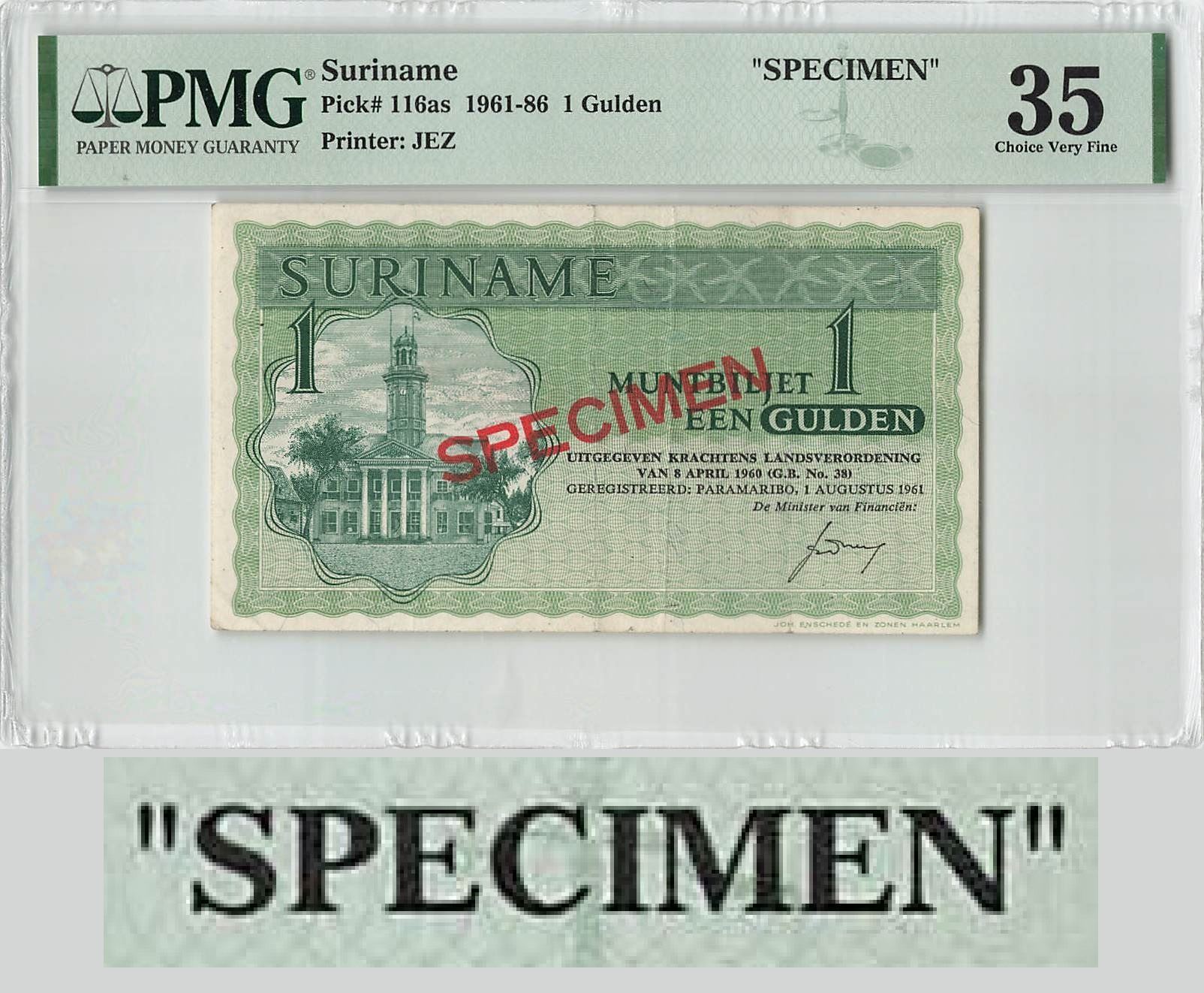 Suriname 1 Gulden 1961 Specimen Pick 116as PMG Choice Very Fine 35