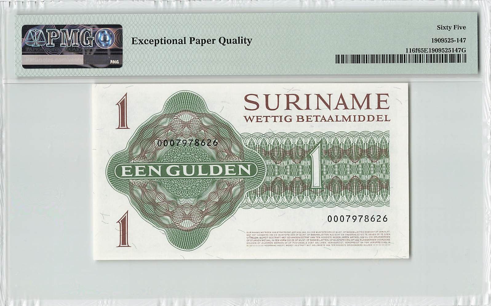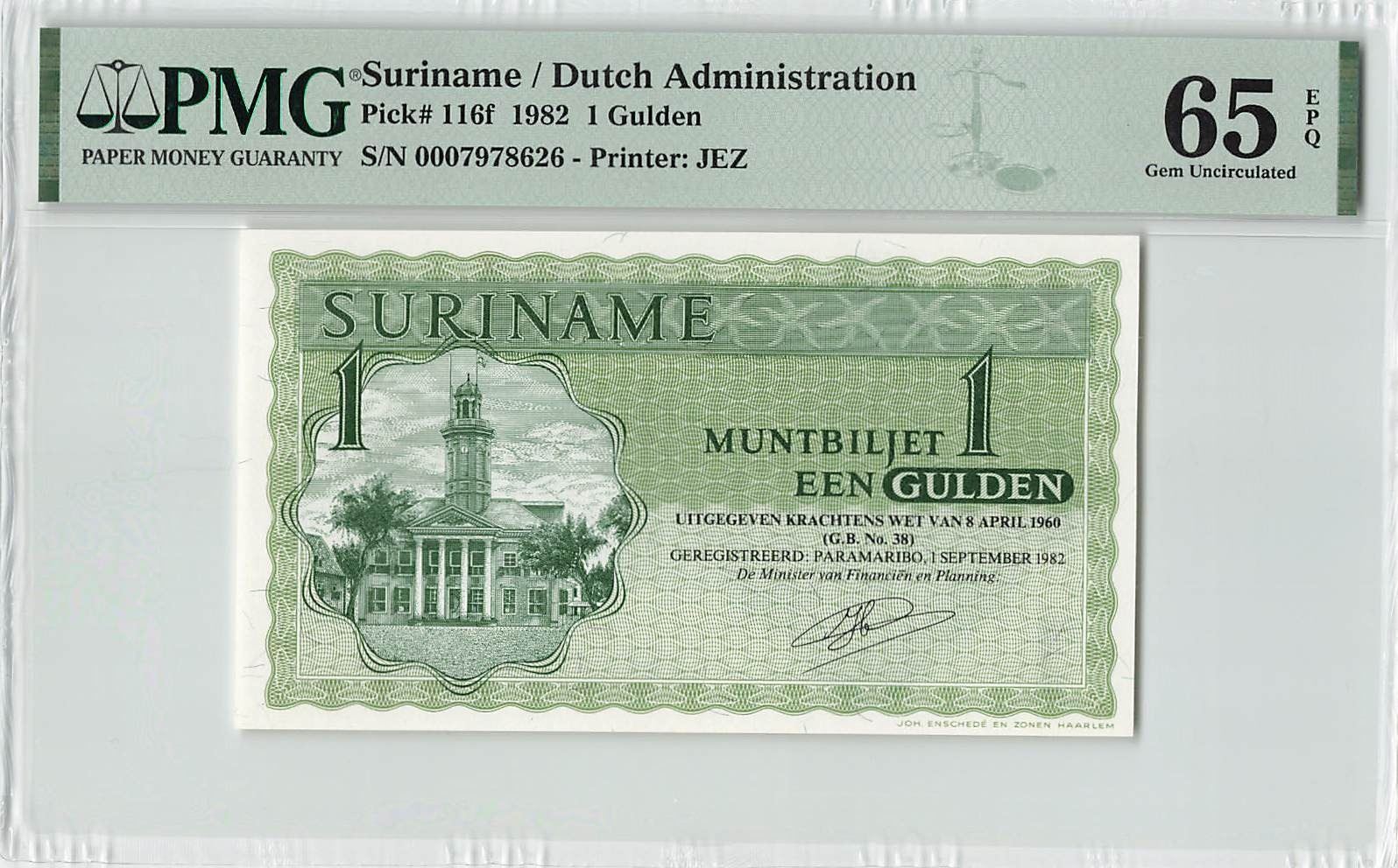 Suriname 1 Gulden 1982 State Note Pick 116f PMG Gem Uncirculated 65 EPQ