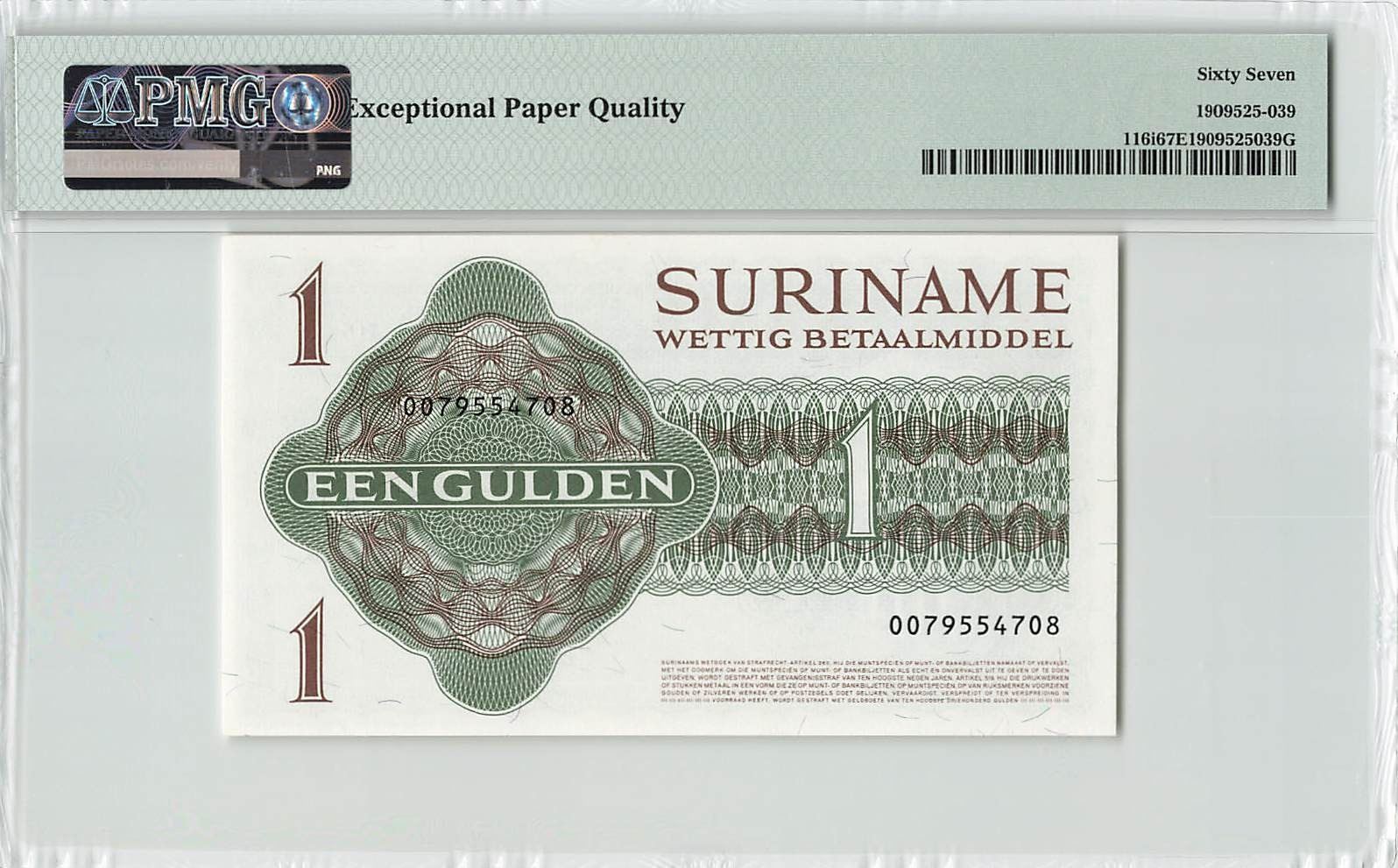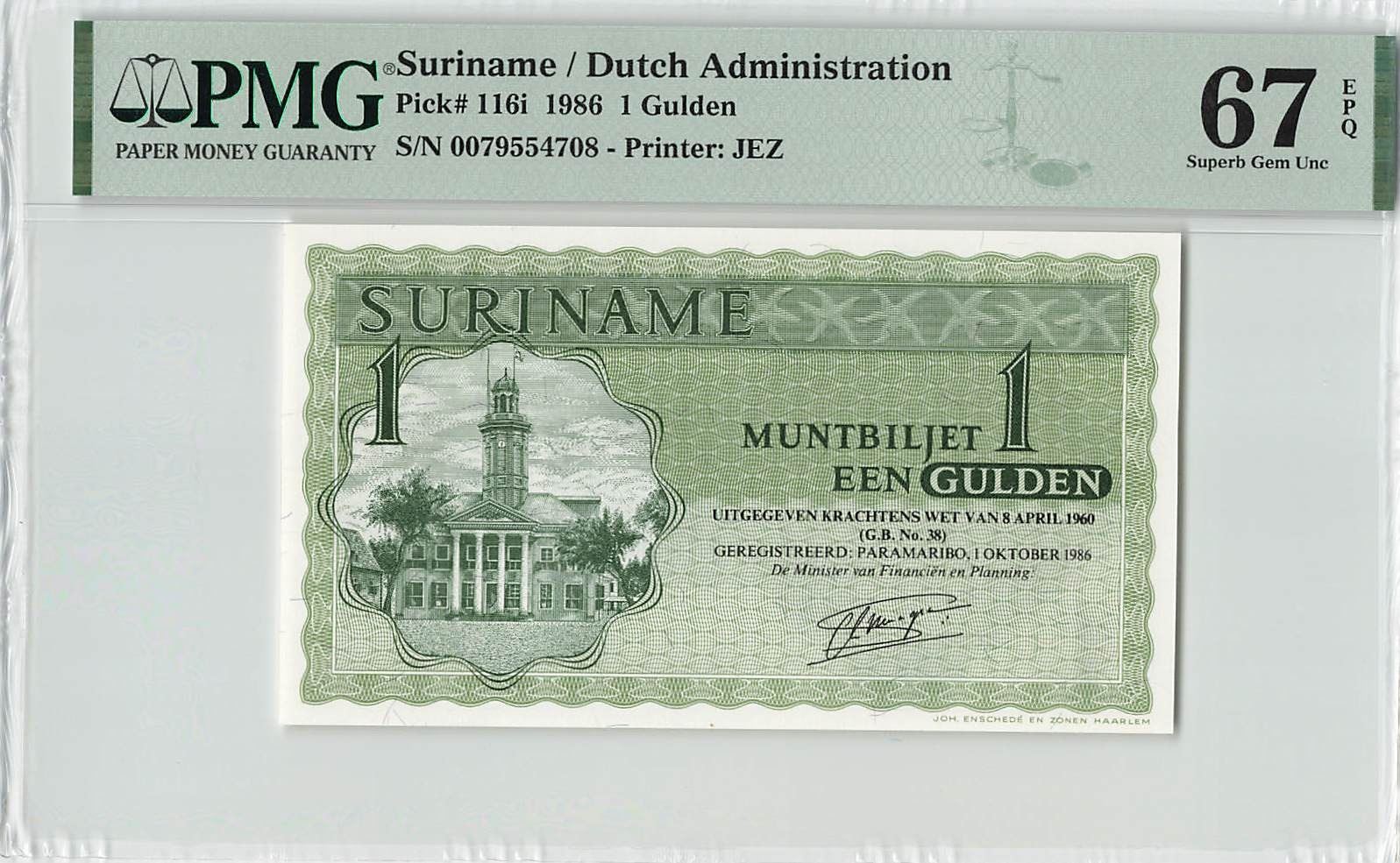 Suriname 1 Gulden 1986 State Note Pick 116i PMG Superb Gem UNC 67 EPQ