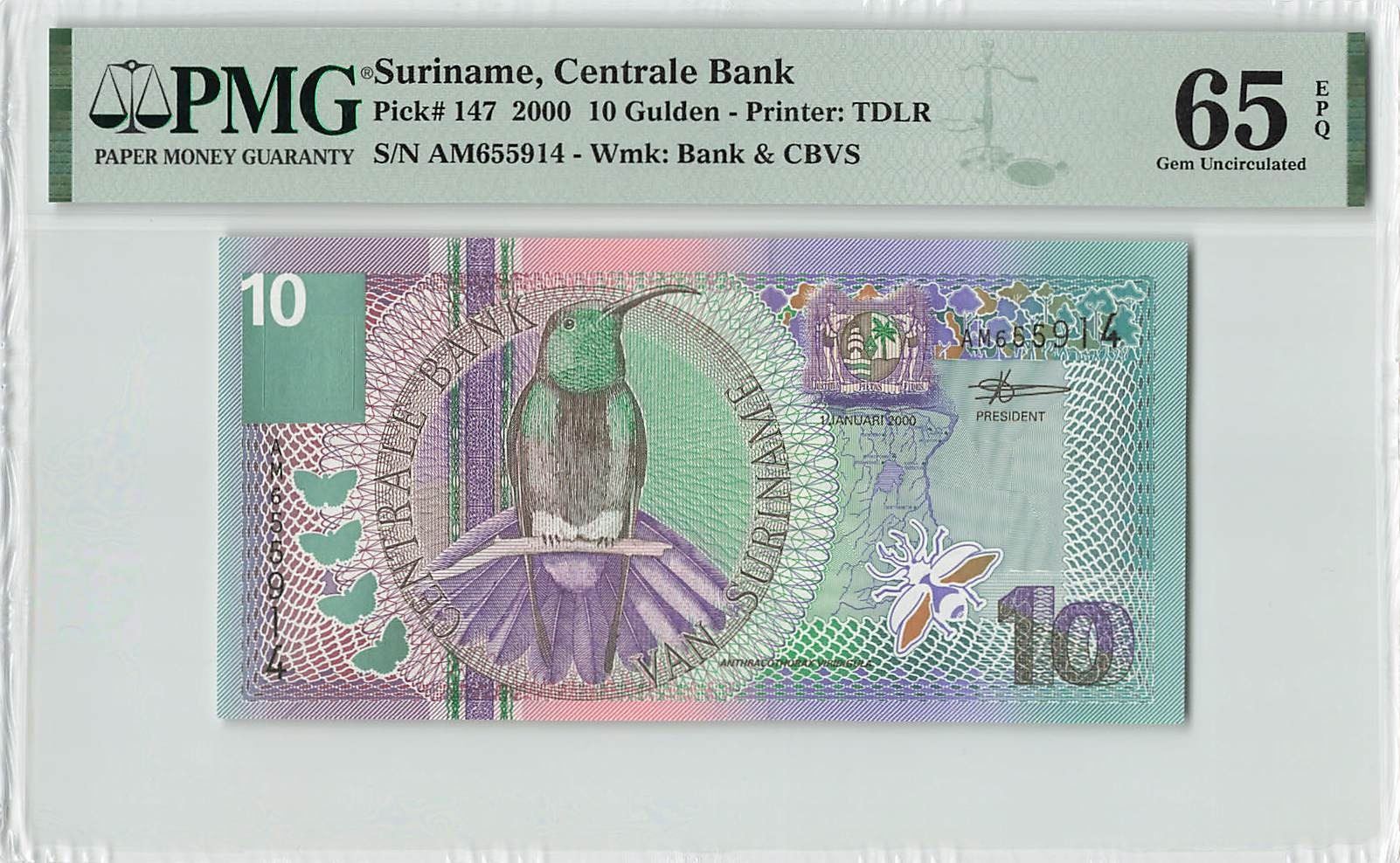 Suriname 10 Gulden 2000 TDLR Pick 147 PMG Gem UNC 65 EPQ