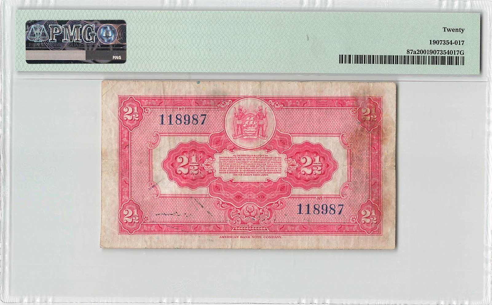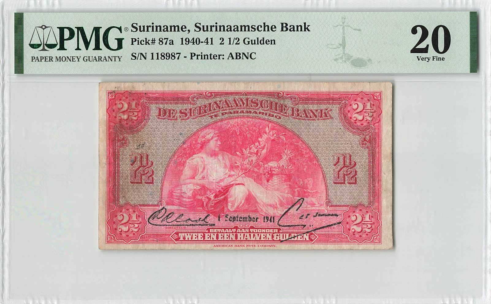 Suriname 2½ Gulden 1941 ABNC 01.09.1941 Pick 87a PMG Very Fine 20