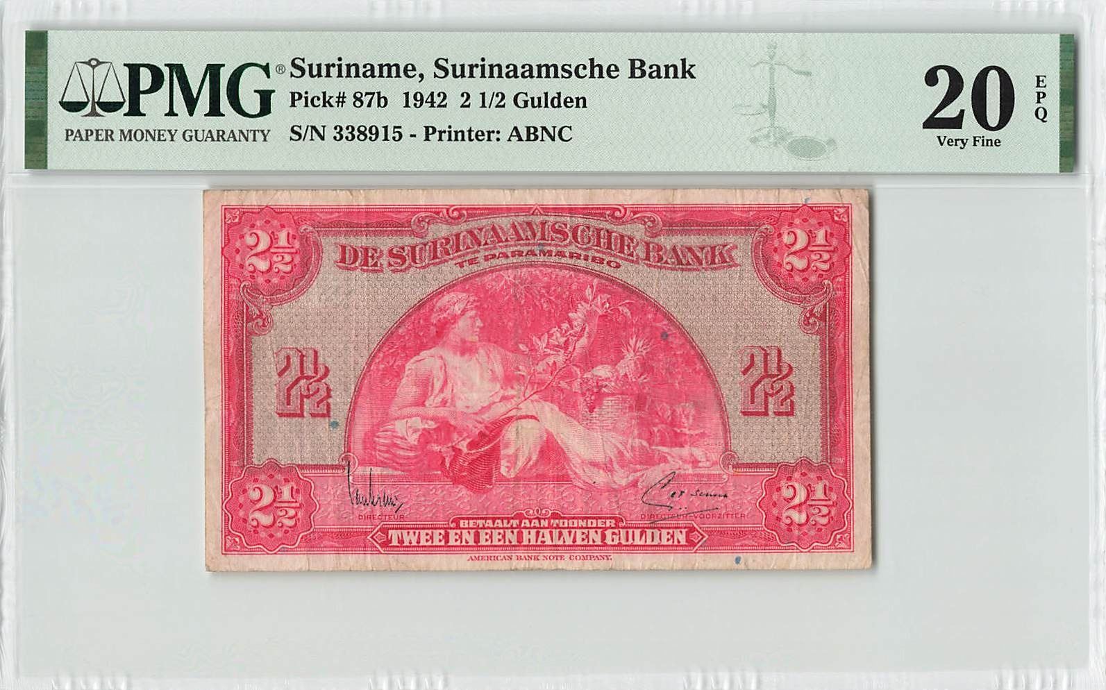 Suriname 2½ Gulden 1942 ABNC 01.01.1942 Pick 87b PMG Very Fine 20 EPQ