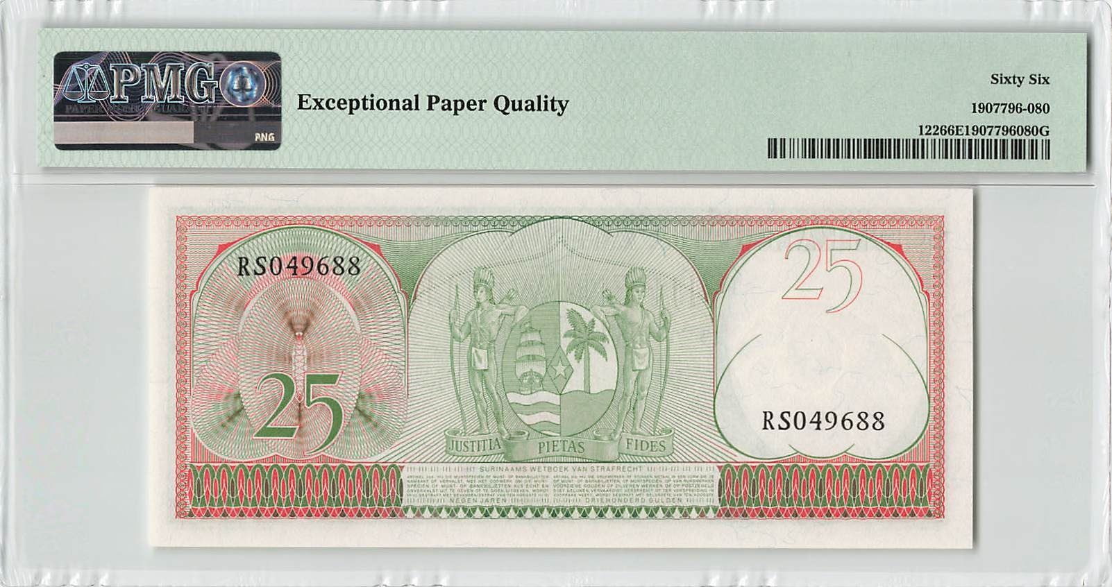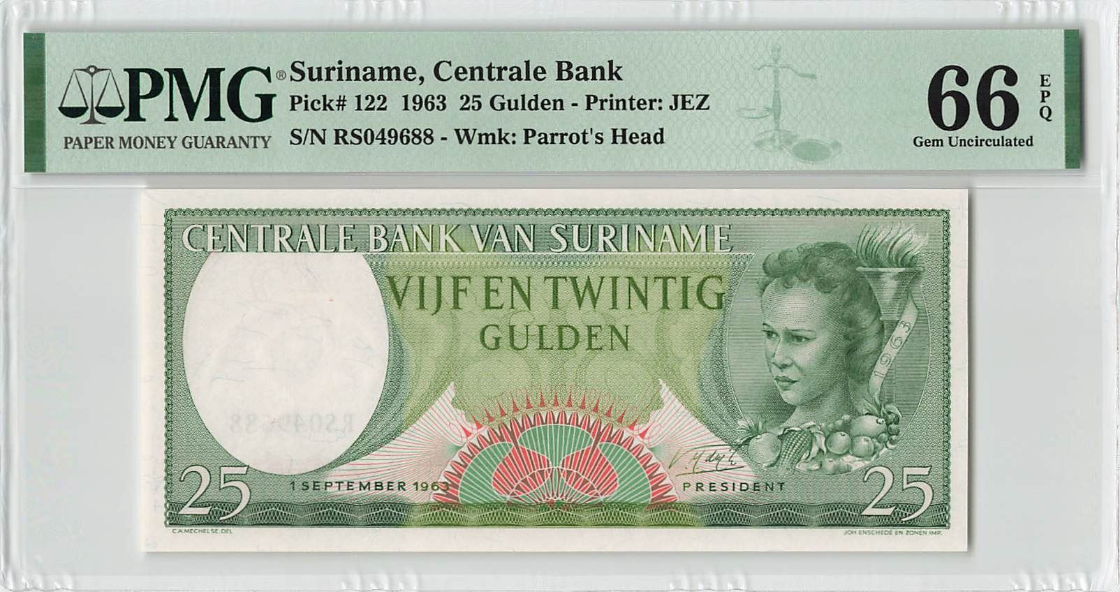 Suriname 25 Gulden 1963 JEZ Pick 122 PMG Gem Uncirculated 66 EPQ