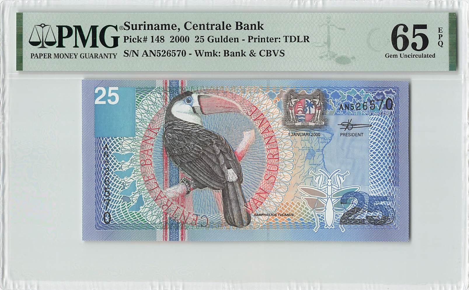 Suriname 25 Gulden 2000 TDLR Pick 148 PMG Gem Uncirculated 65 EPQ