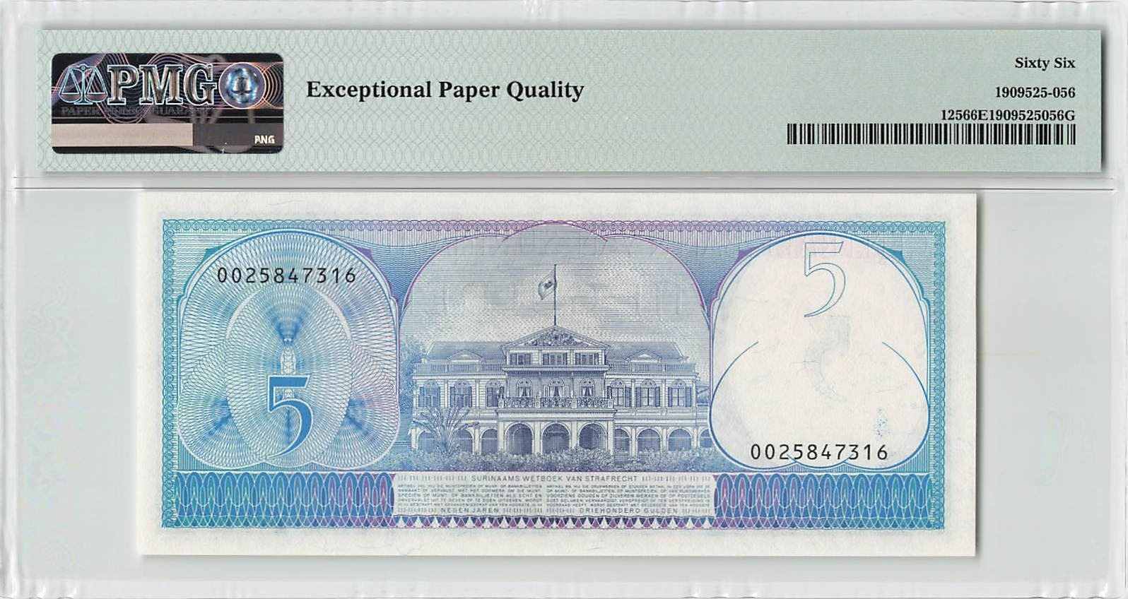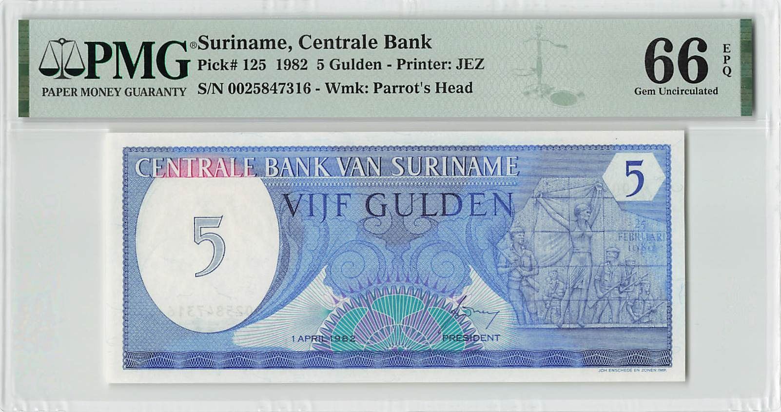 Suriname 5 Gulden 1982 JEZ Pick 125 PMG Gem Uncirculated 66 EPQ