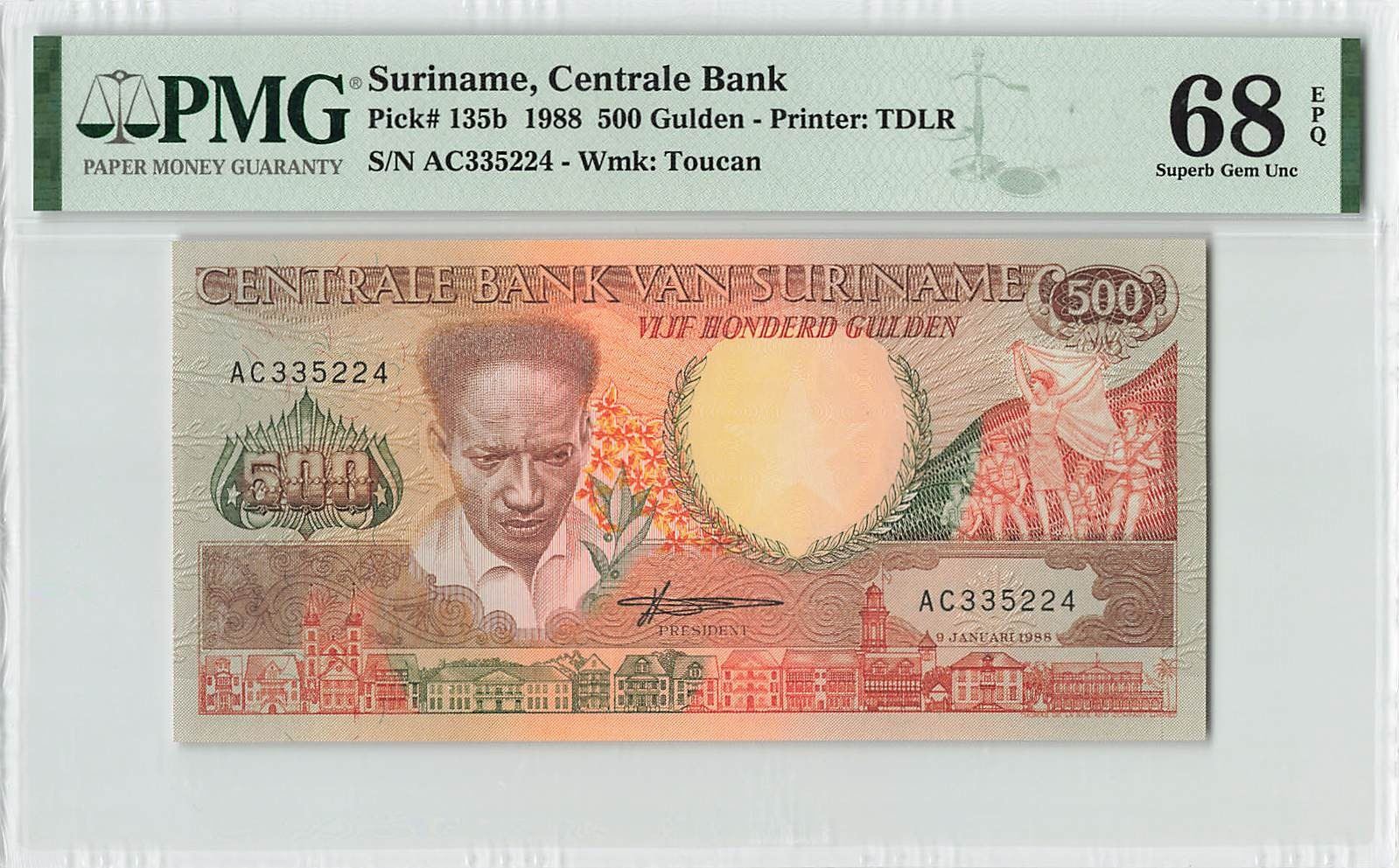 Suriname 500 Gulden 1988 TDLR Pick 135b PMG Superb Gem UNC 68 EPQ