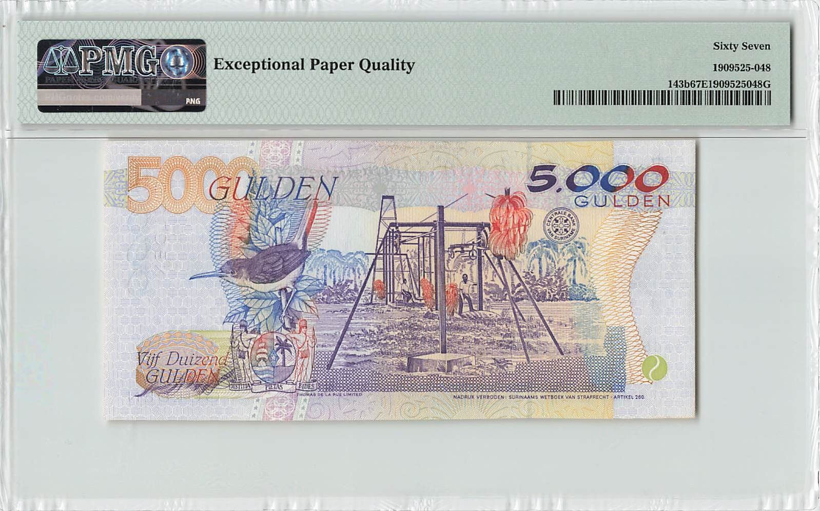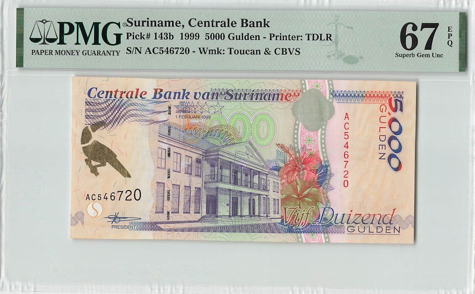 Suriname 5000 Gulden 1999 TDLR Pick 143b PMG Superb Gem UNC 67 EPQ