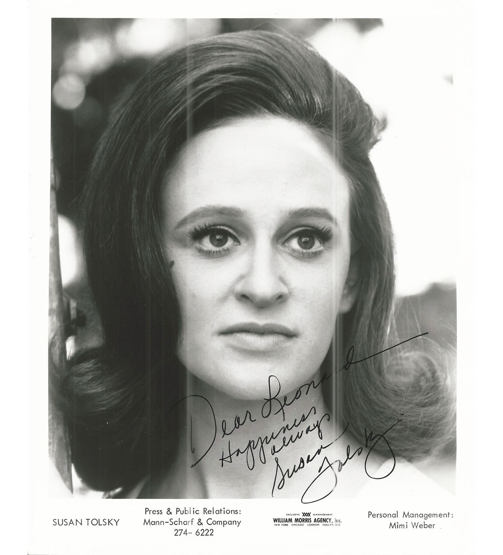 Susan Tolsky signed photo. 8x10 inches