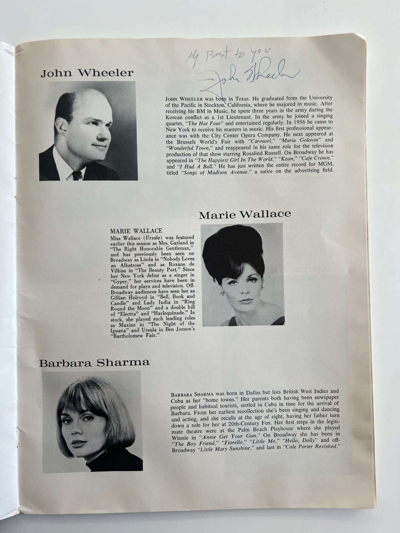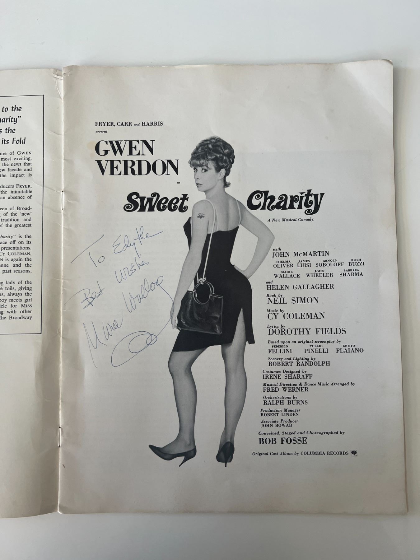 Sweet Charity cast signed booklet autographed by Gwen Verdon, Marie Wallace, and John Wheeler. 9x12 inches