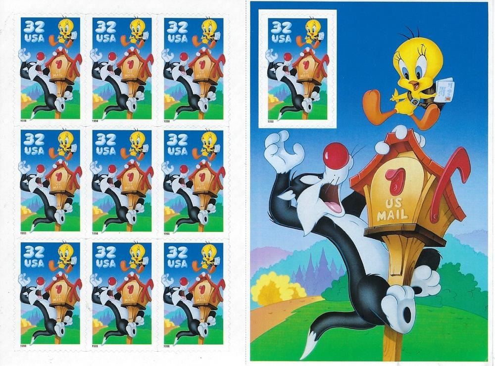Signed Sylvester and Tweety Stamp Sheet. Consist of 10 stamps at .32 each