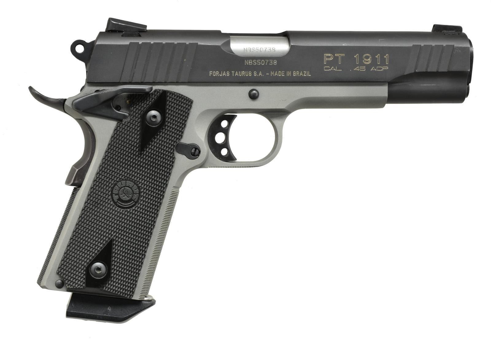 Cal. 45 ACP. S# NBS50738. Bbl. 5" w/ 3 dot sighting system. Dark finish slide & gray finished frame. MAGS: 1-8 rd. mag. CONDITION: fine w/ evidence of limited use. Some high edge wear on slide & a few marks on frame. Bright, shiny bore. Mechanically good. (21-1471/MGM). MODERN. $450-650.