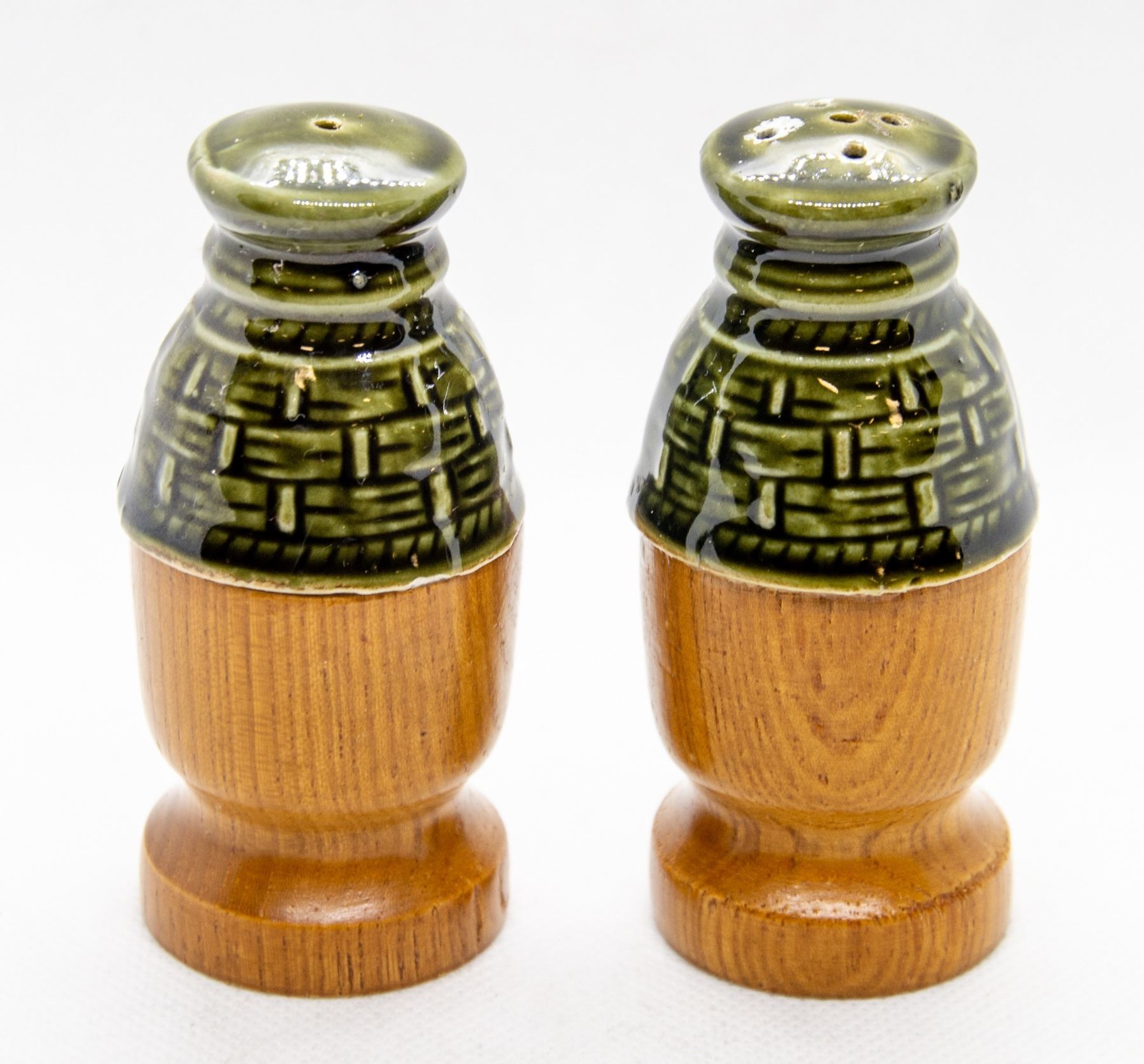 TEAK / CERAMIC SALT/PEPPER SHAKERS
