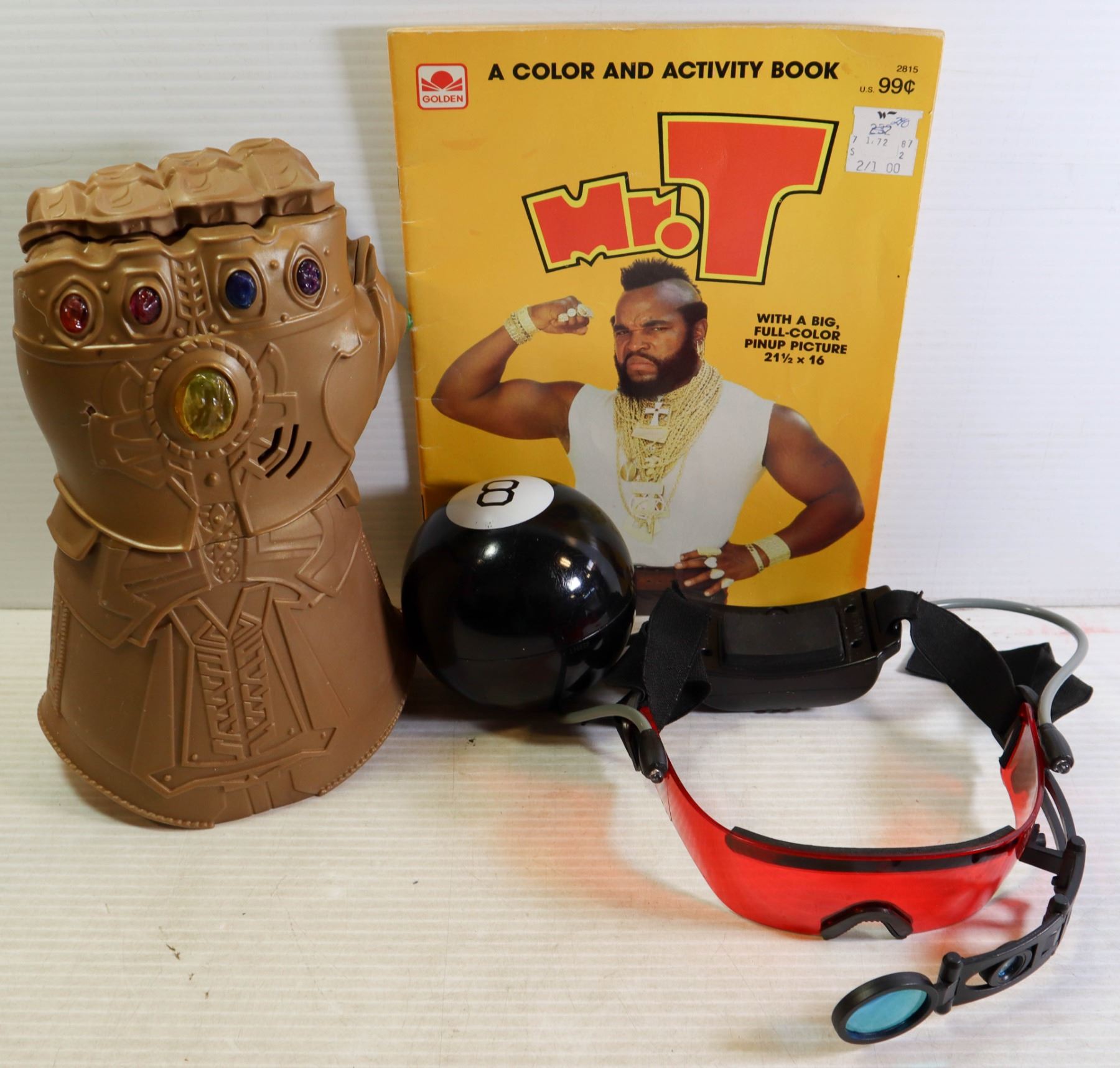 THANOS GLOVE, CYBORG GOGGLES& MR.T & MAGIC 8 BALL