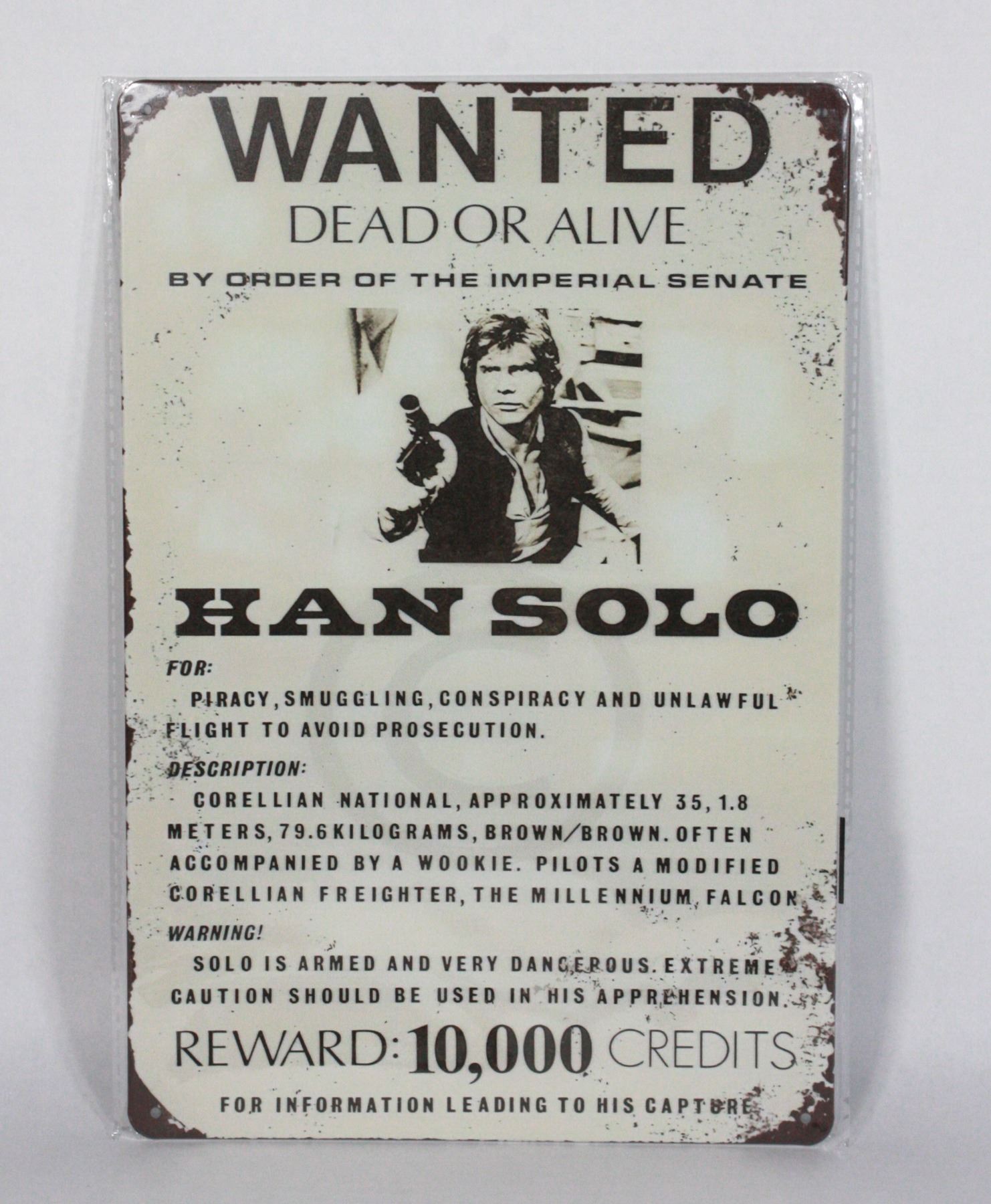 ALIVE HANS SOLO." APPROX. 12"X8". PRE-DRILLED HOLES FOR HANGING
