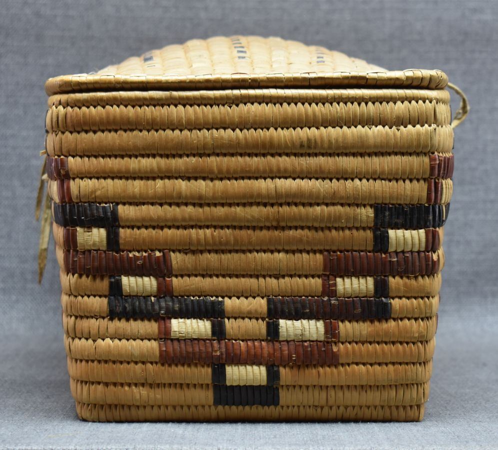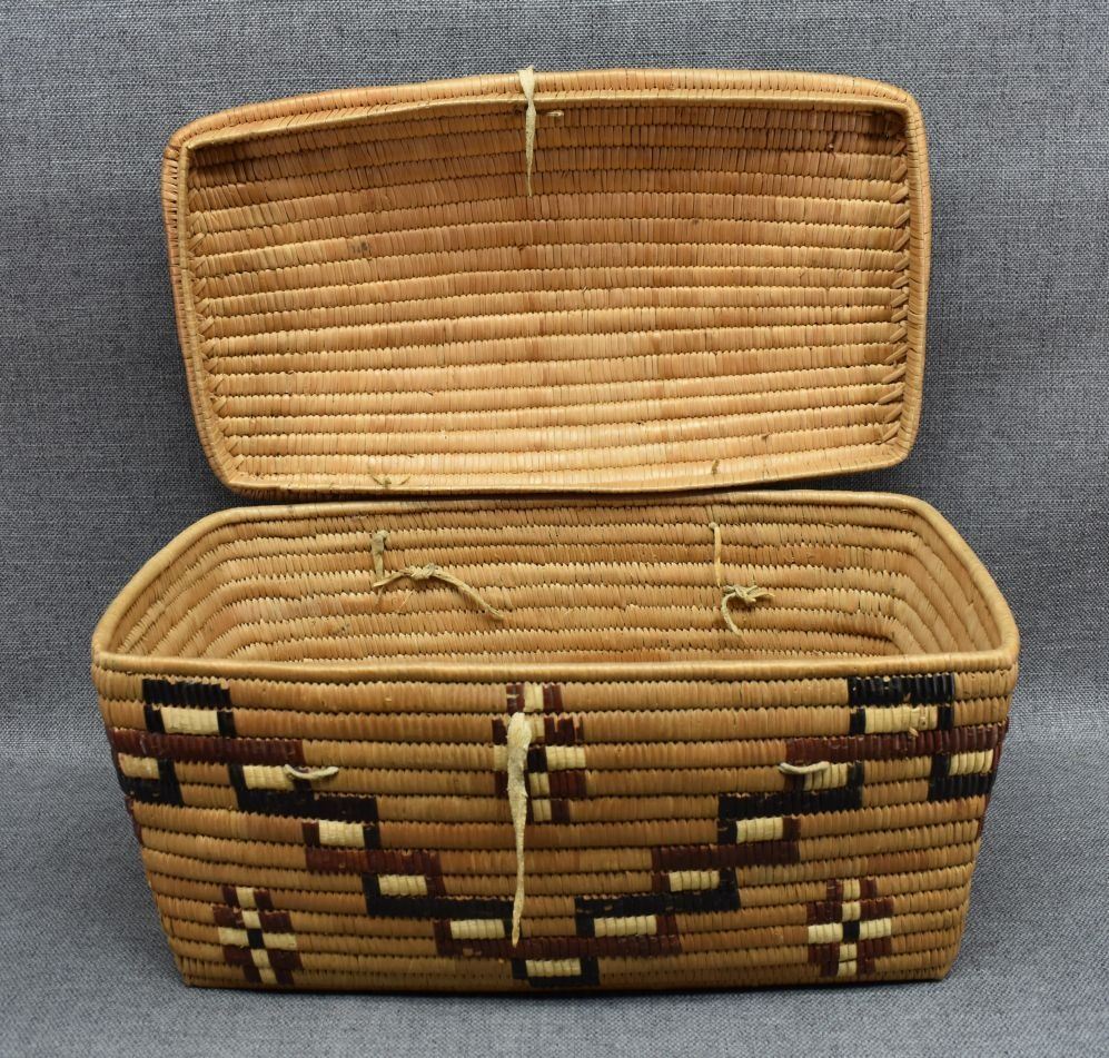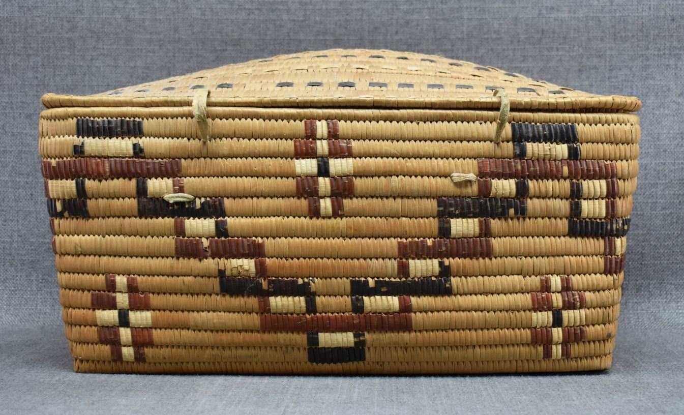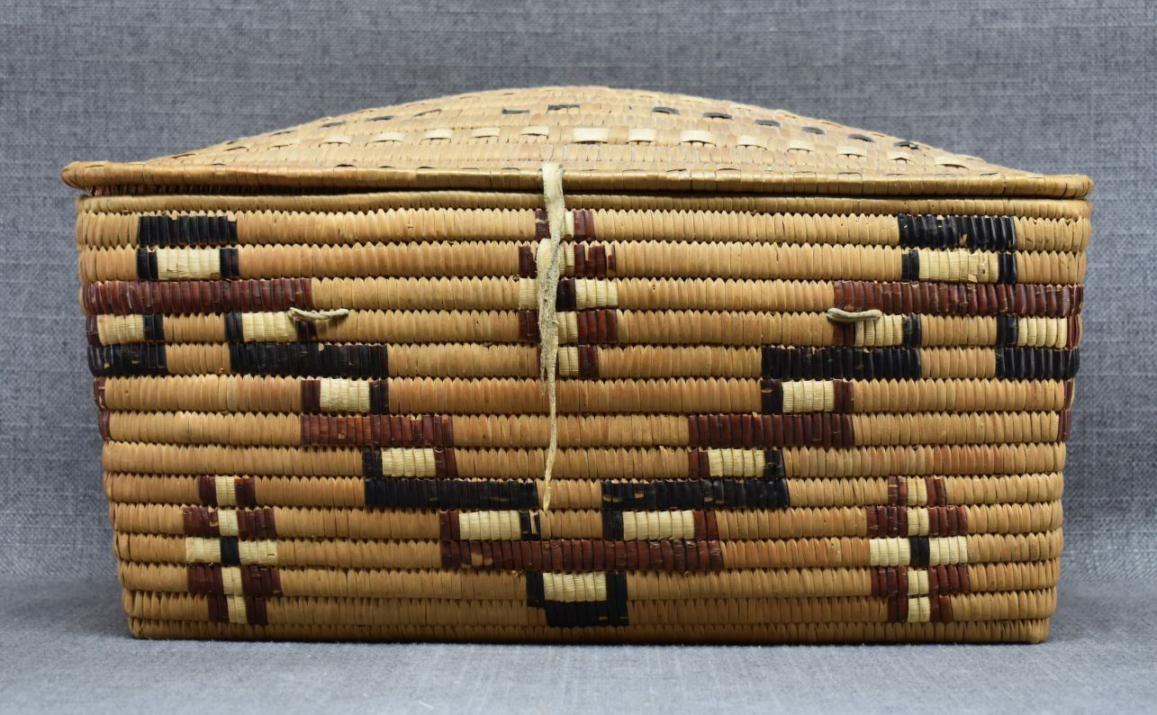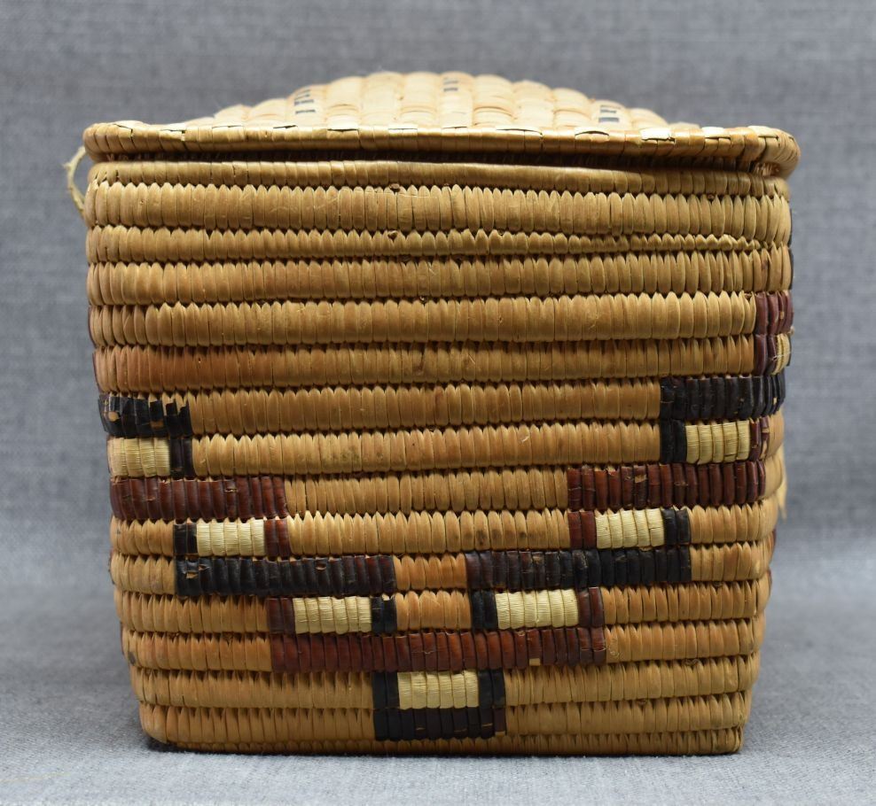 1920's Thompson river Indian, hand woven polychrome geometric design 9" x 17.5" x 10"
