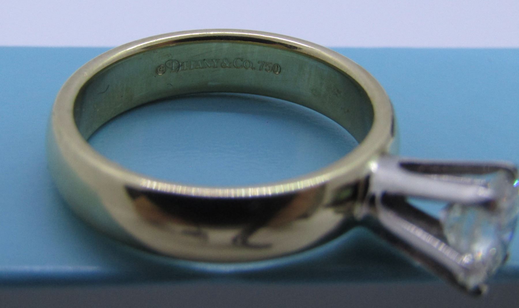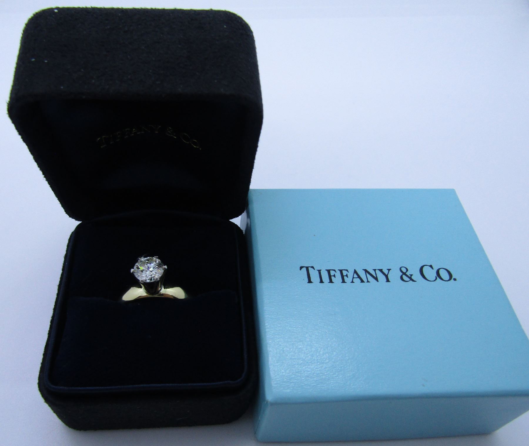 GENUINE .93 CARAT FULL CUT MODERN BRILLIANT ROUND DIAMOND: I COLOR, VS2 CLARITY. RING SIZE 5 1/2. WITH TIFFANY BOX. US SHIPPING $30.