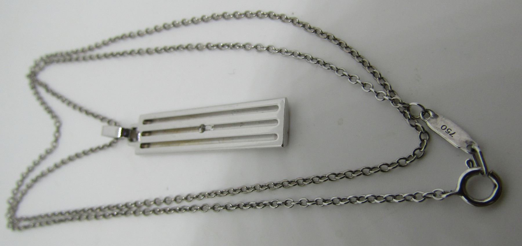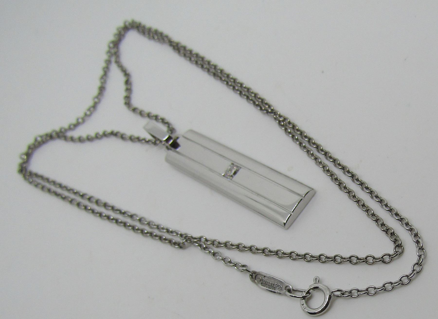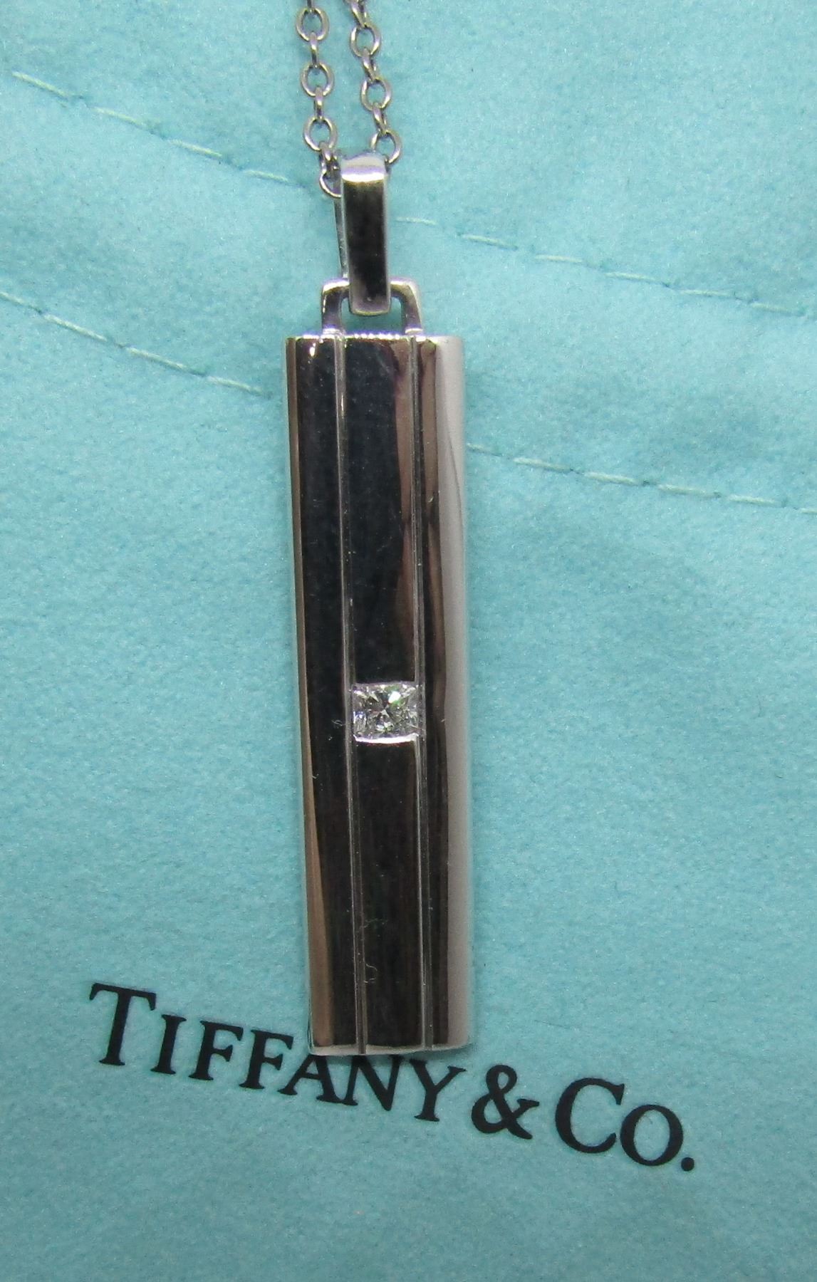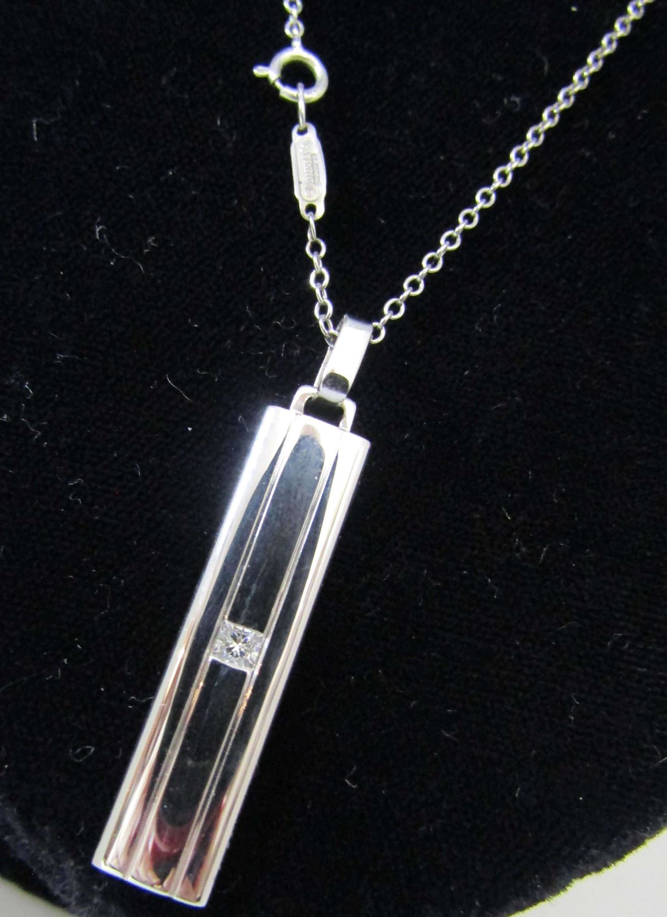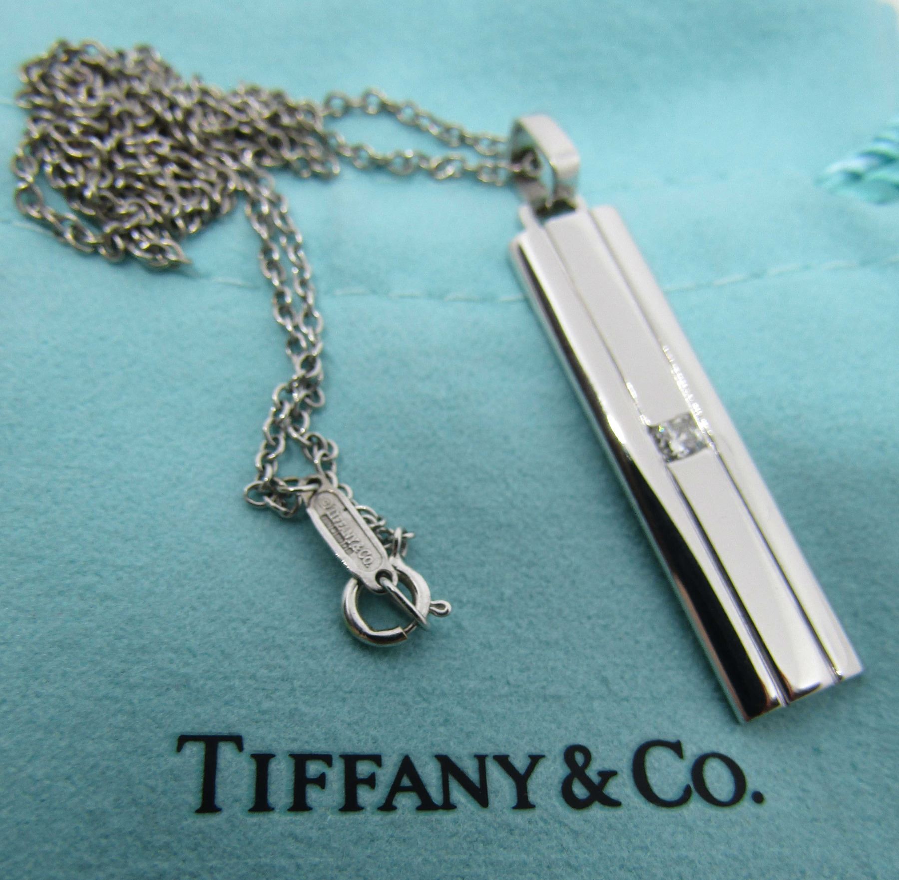 GENUINE SIGNED "TIFFANY & CO 750" 22 INCH LONG TIFFANY 18K LINK CHAIN. WEIGHS 8.6 GRAMS. PENDANT MEASURES 40MM BY 8MM WITH A FULL CUT VS PRINCESS DIAMOND. RETAIL $2900.00. IN TIFFANY POUCH. EXCELLENTCONDITION. USA SHIPPING $15
