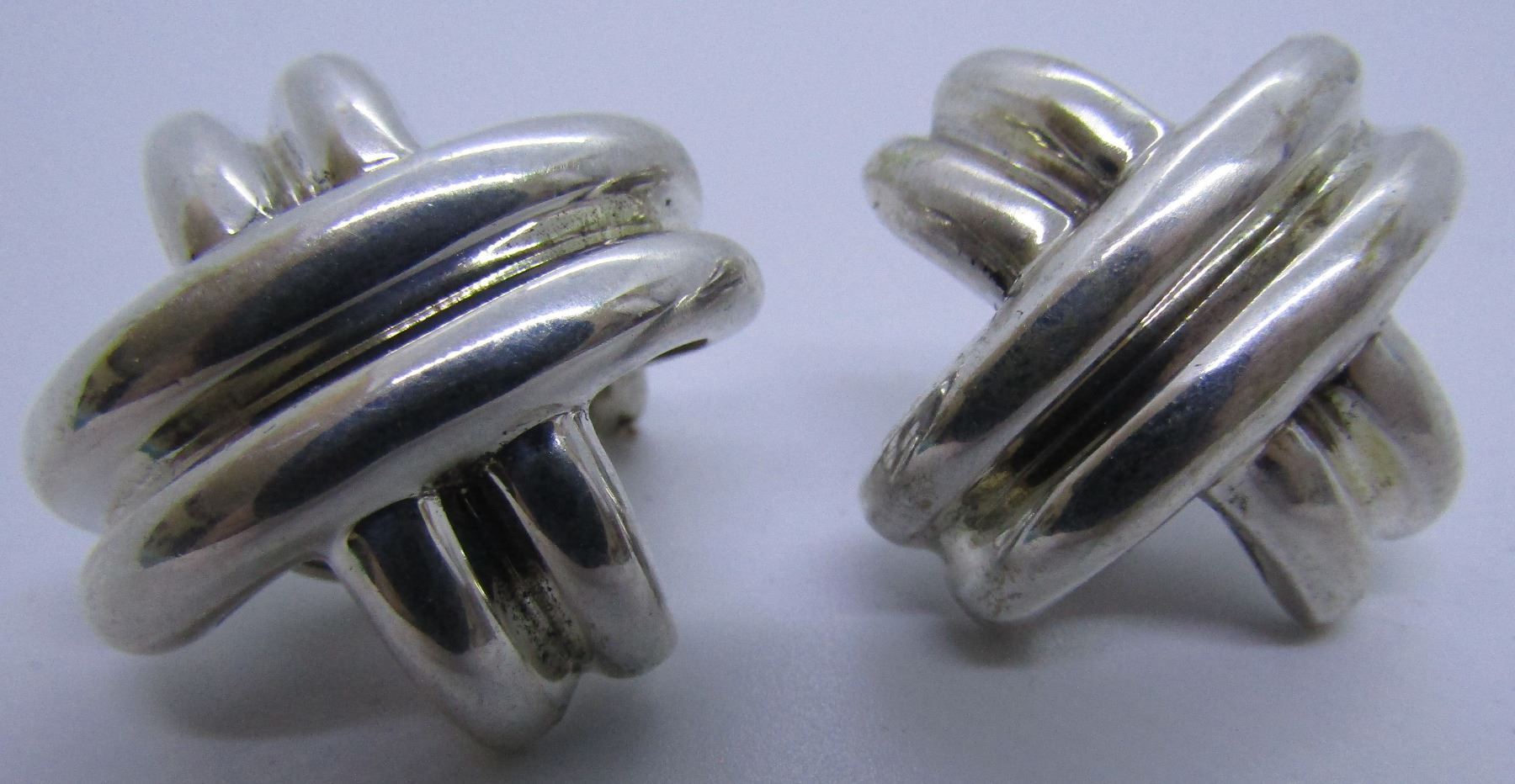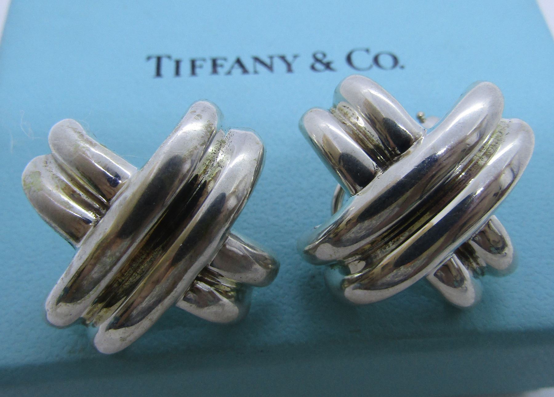 HUGE GENUINE SIGNED "1990 TIFFANY & CO 925" POST AND CLIP EARRINGS. MEASURE 25MM BY 25MM. WEIGH 18.6 GRAMS. EXCELLENT CONDITION. WITH TIFFANY BOX. USA SHIPPING $8.