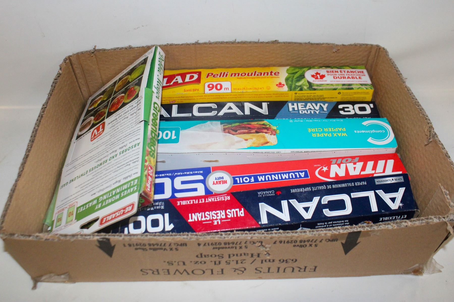 TIN FOIL/CELLOPHANE/WAX PAPER ROLLS- BOX LOT