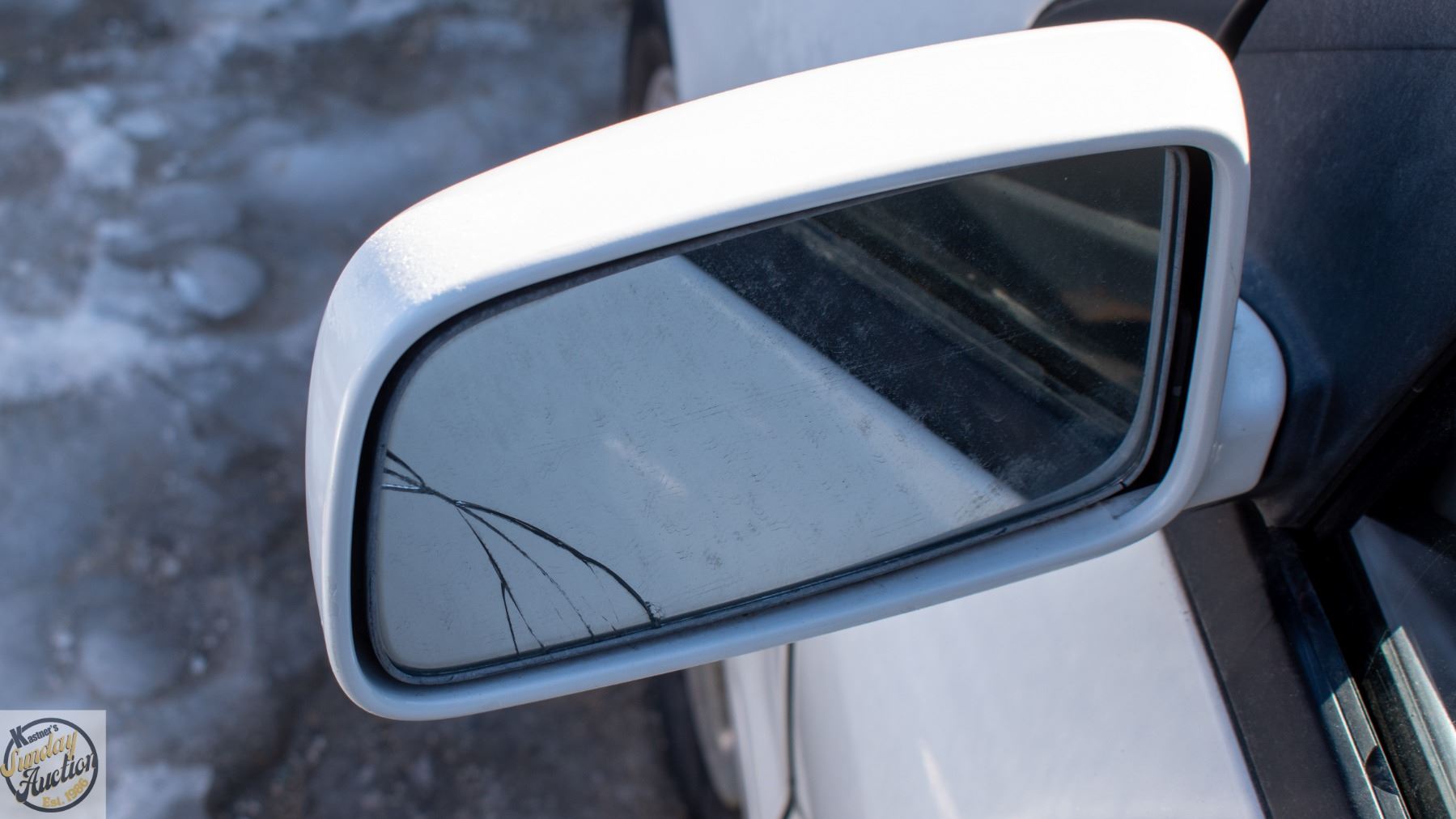 DRIVER'S MIRROR IS CRACKED.