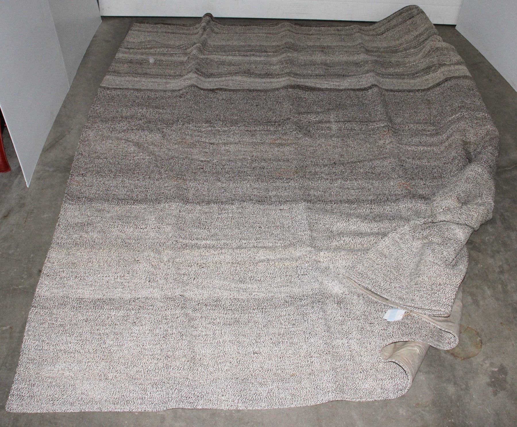 WRITEUP FROM STORE ORIGINALLY SOLD AT: WAS $3,500, NOW $1,050. WITH CENTURIES OF EXPERTISE, TURKEY IS KNOWN AS ONE OF THE MOST RESPECTED TEXTILE FABRICATORS IN THE WORLD. OUR FLAT WEAVE TURKISH KILIMS ARE COMPOSED OF HAND WOVEN VINTAGE PRAYER RUGS FROM THE 20TH CENTURY, MATCHED AND ASSEMBLED INTO LARGER FLOOR COVERINGS. EACH CONSISTS OF A MULTI-TONAL, LINEAR WEAVE PATTERN WITH OCCASIONAL AND SUBTLE ORNAMENTAL SYMBOLS. MATERIAL: COTTON AND GOAT HAIR. CANVASS BACKING