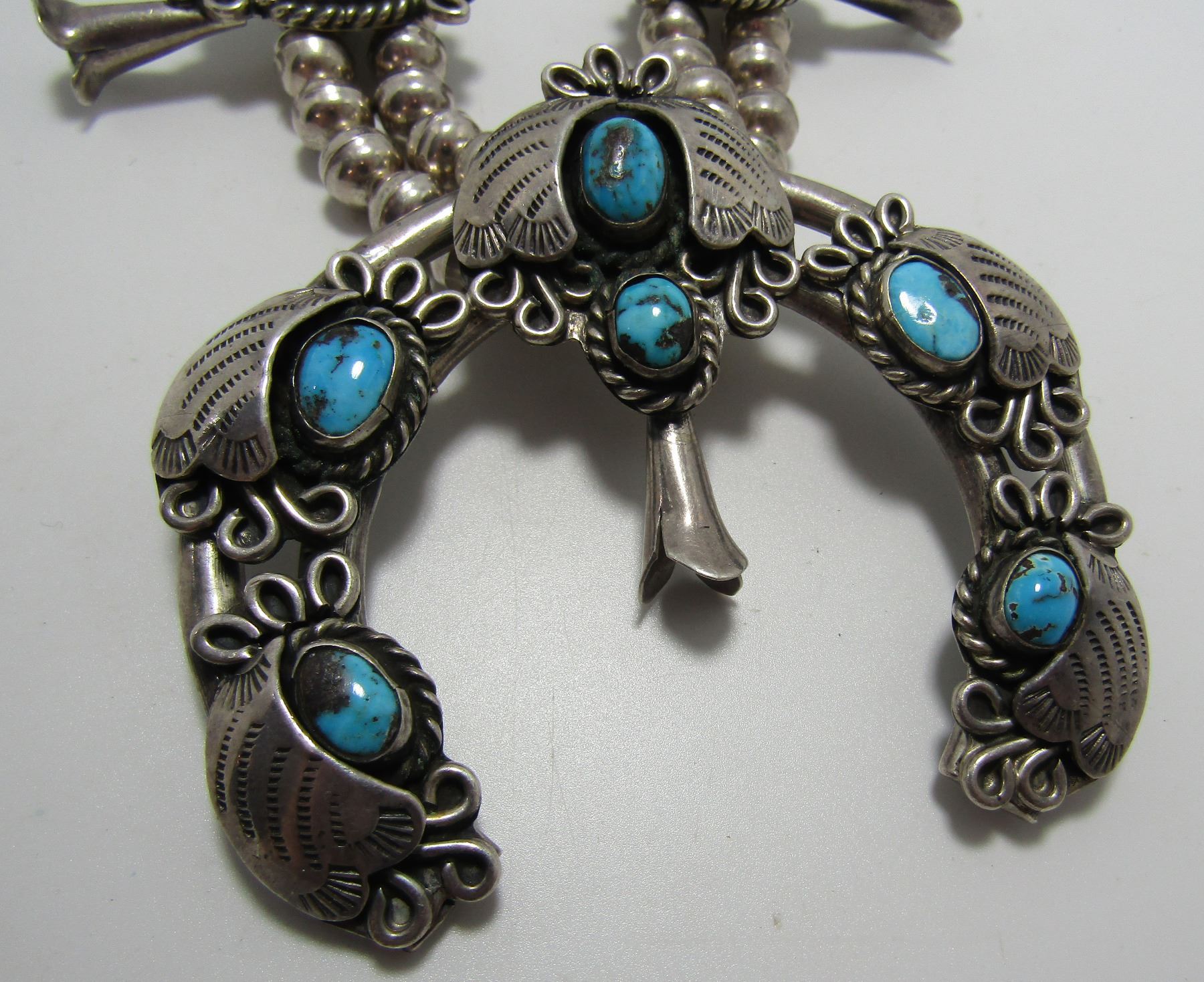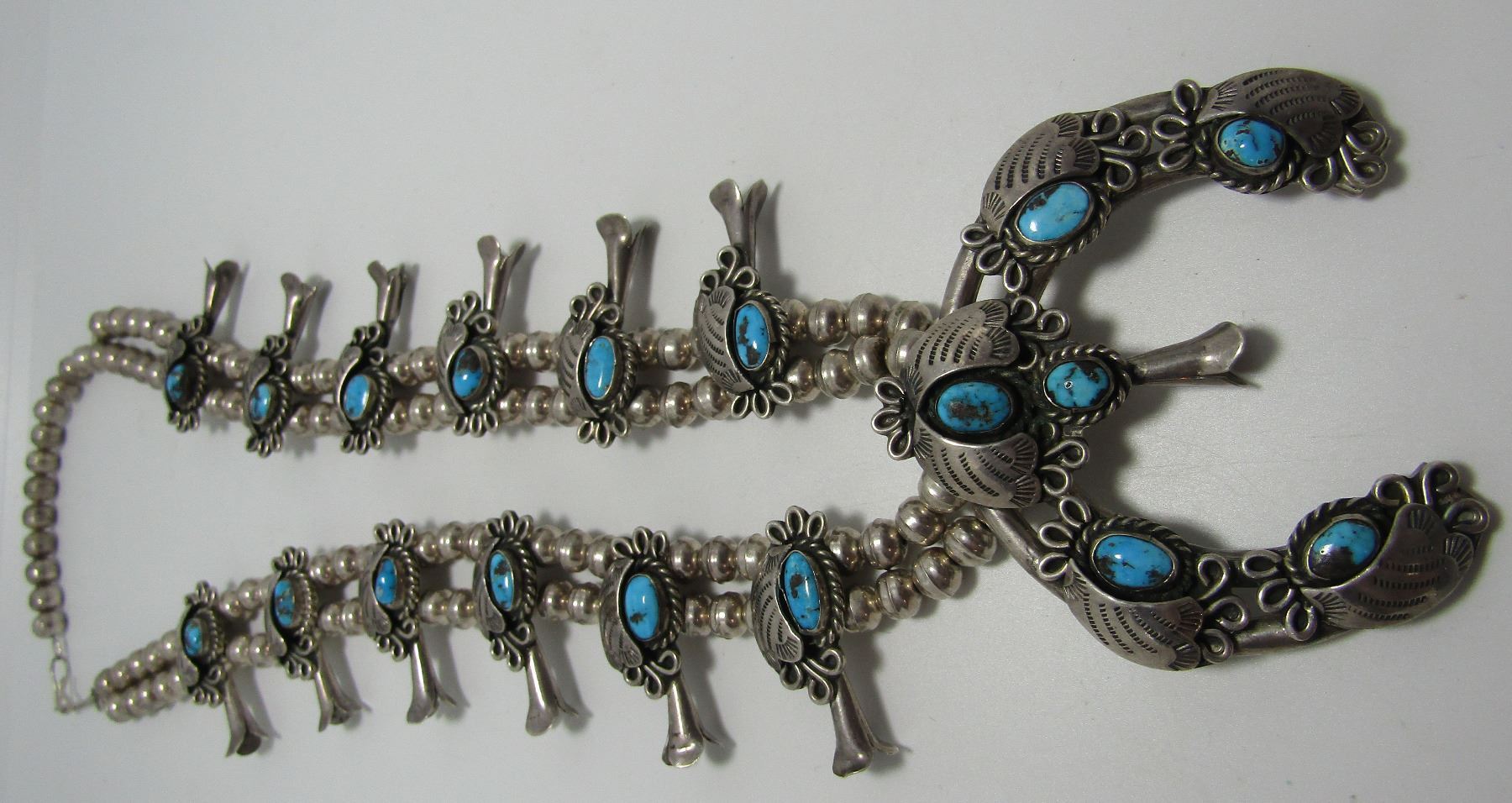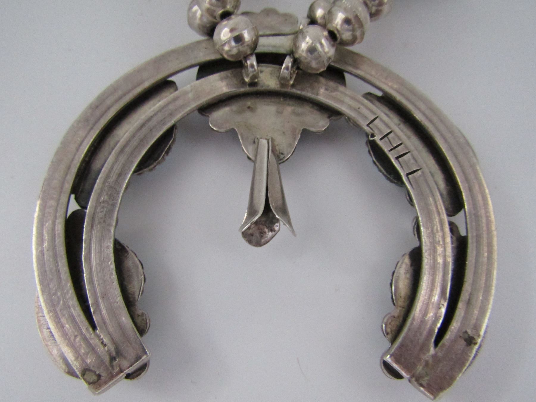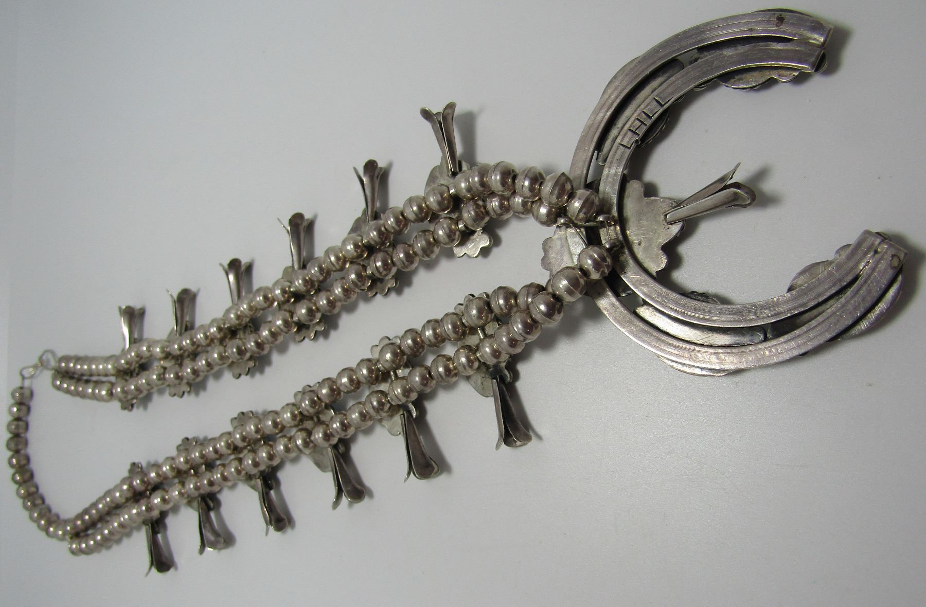WEIGHS 244 GRAMS TESTED STERLING SILVER. HALLMARKED "L. HLL" NATIVE AMERICAN SOUTHWEST INDIAN NAVAJO JEWELRY. NAJA 80MM WIDE BY 73MM LONG PLUS 24" LONG BEADS. 20" DOUBLE & 4" SINGLE STRAND OF NAVAJO 9MMPEARLS. EXCELLENT VINTAGE ESTATE CONDITION. USA SHIPPING $15.