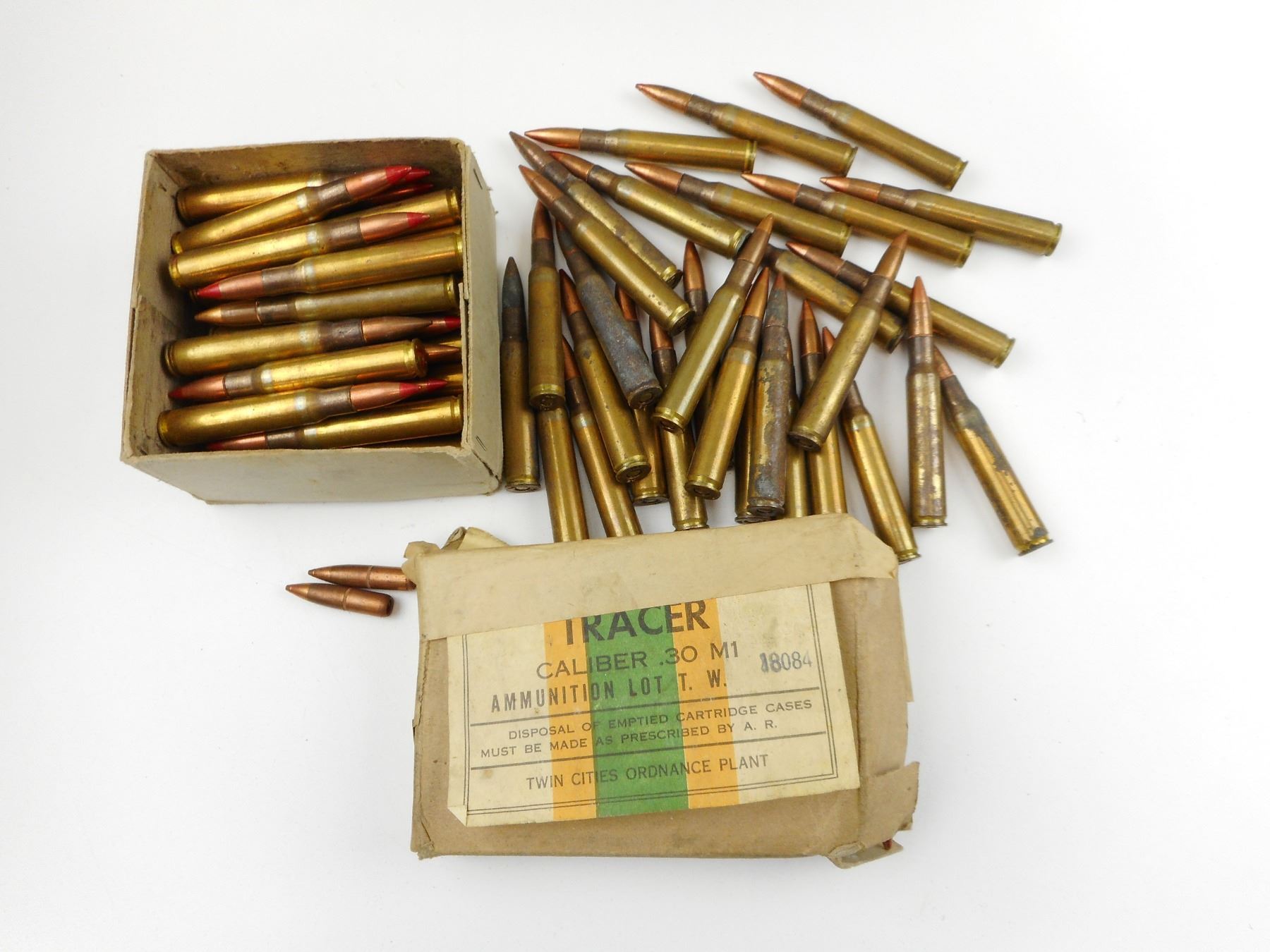 TWIN CITIES 30-06, USGI .30 CAL TRACER, USG .30 CAL TRACER , 85 RNDS ASSORTED, 30-06 1942, .30 CAL TRACER 1942, .30 CAL TRACER 1944