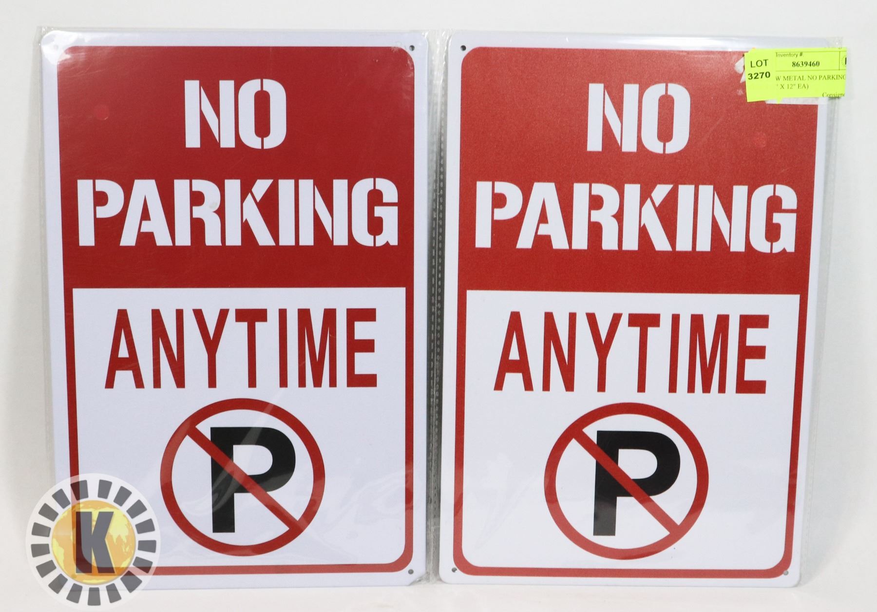TWO NEW METAL NO PARKING SIGNS (8" X 12" EA)