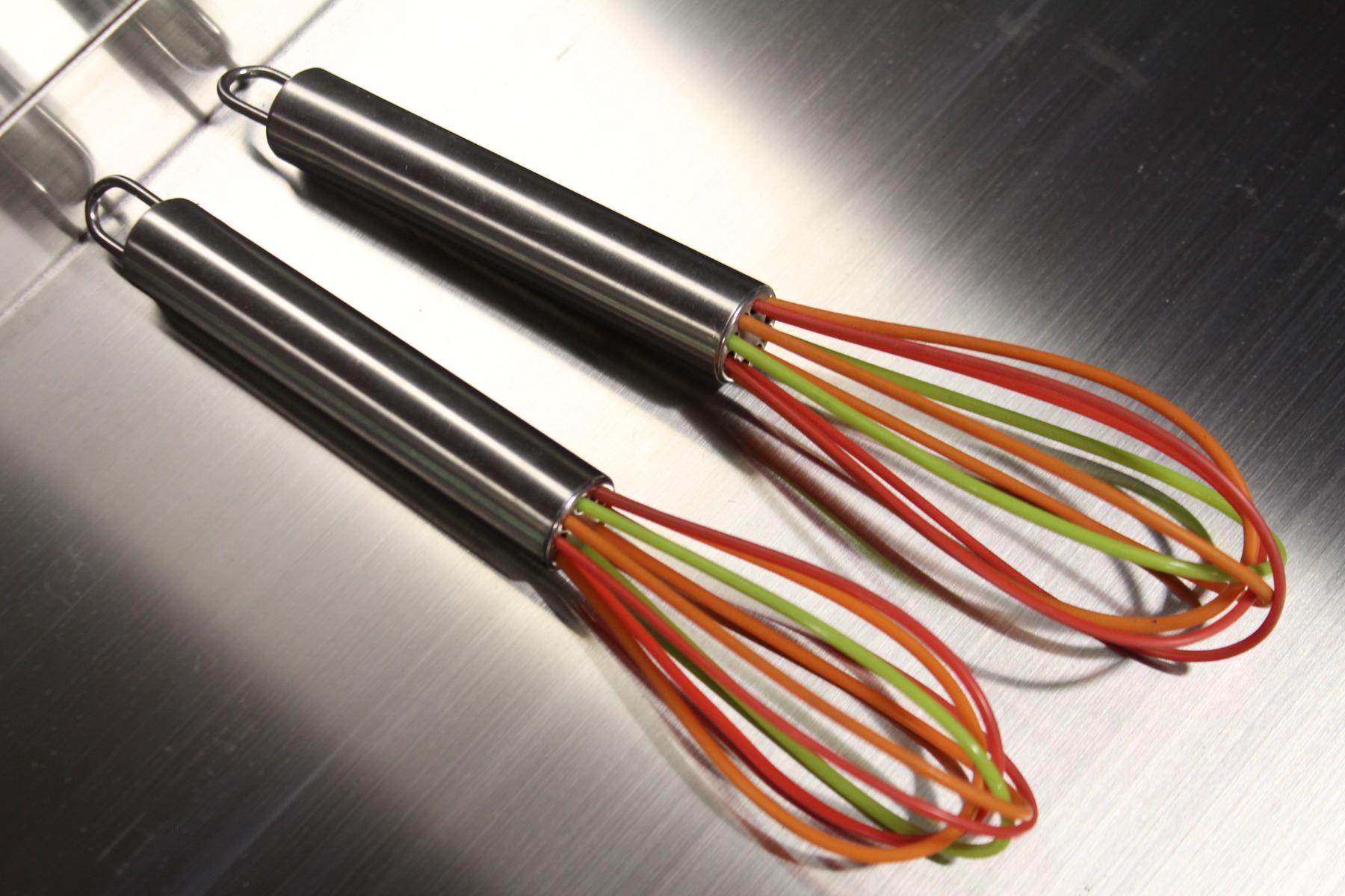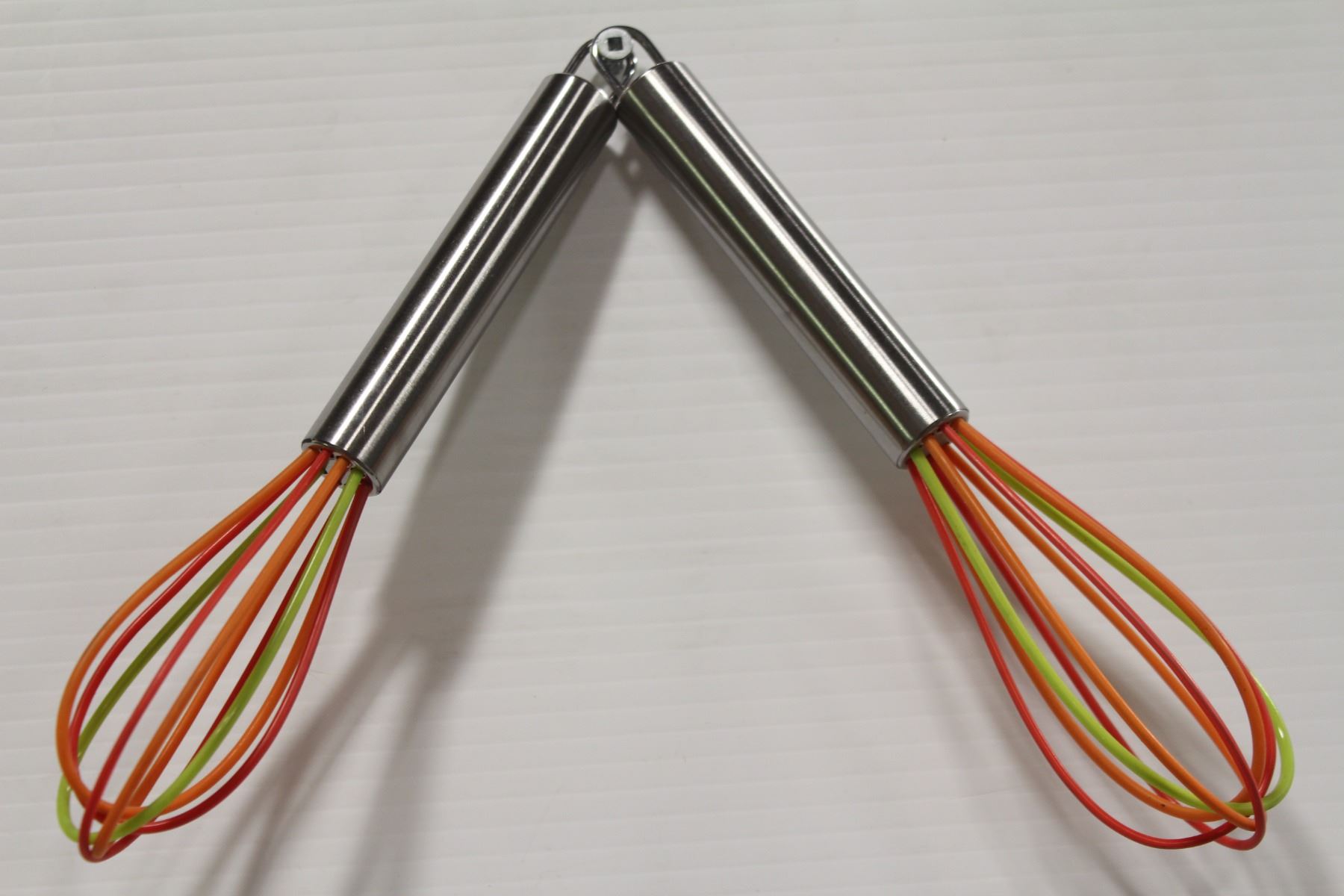 TWO NEW SILICONE WHIPS W/ S/S HANDLE, 8" & 6.5"