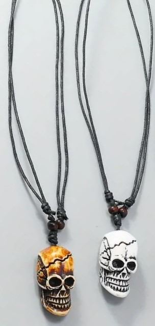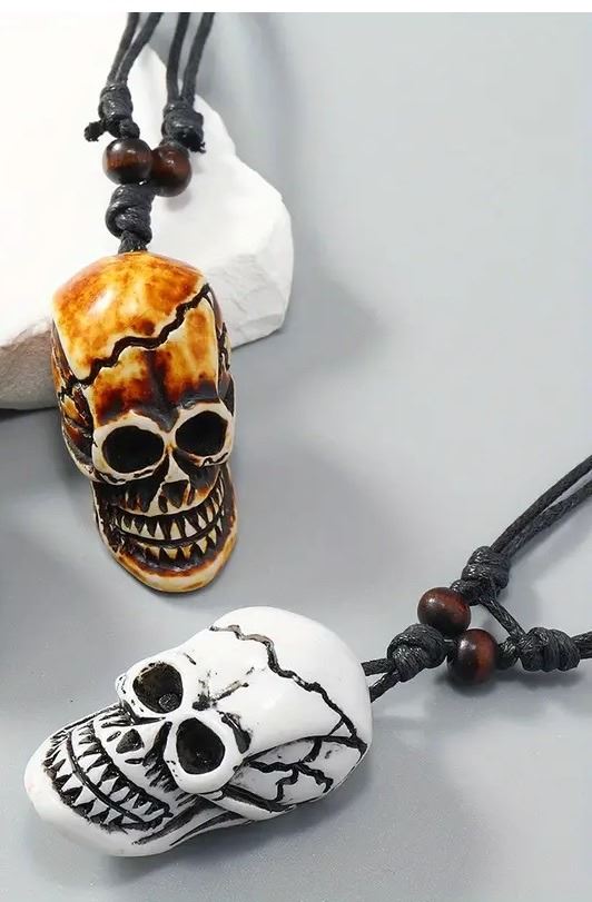 TWO RETRO SKULL PENDANT NECKLACES (WHITE+BROWN)