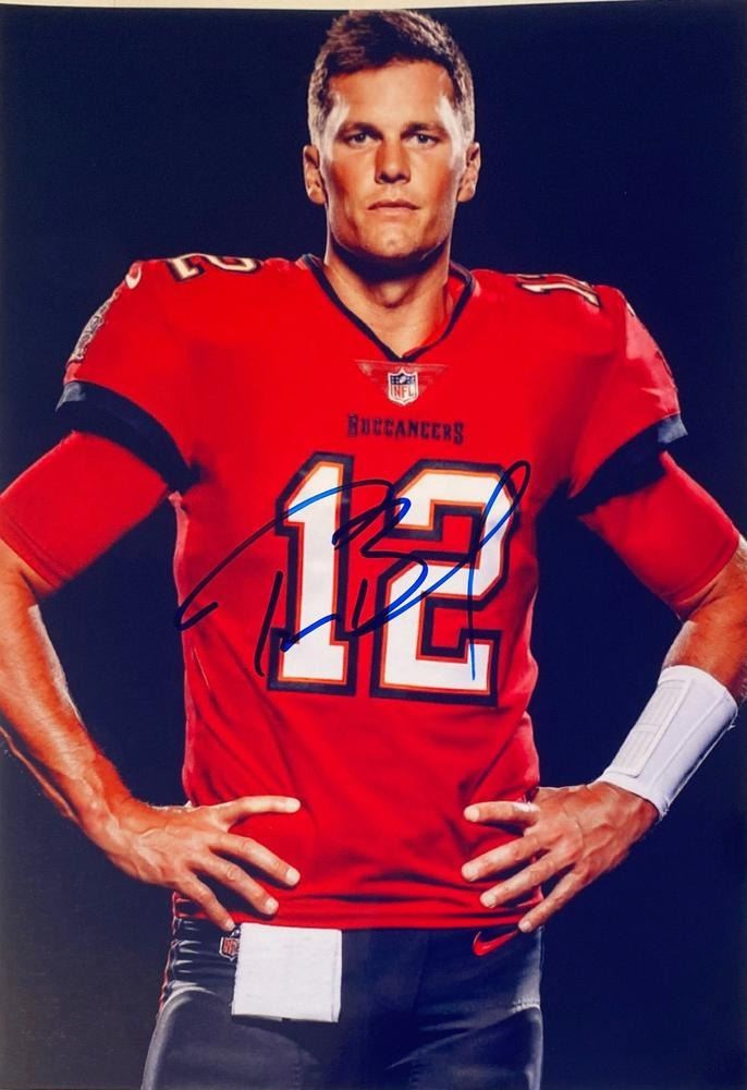 Tampa Bay Buccaneers Tom Brady facsimile signed photo. 8x10 inches. This item is a reprint of an original autograph