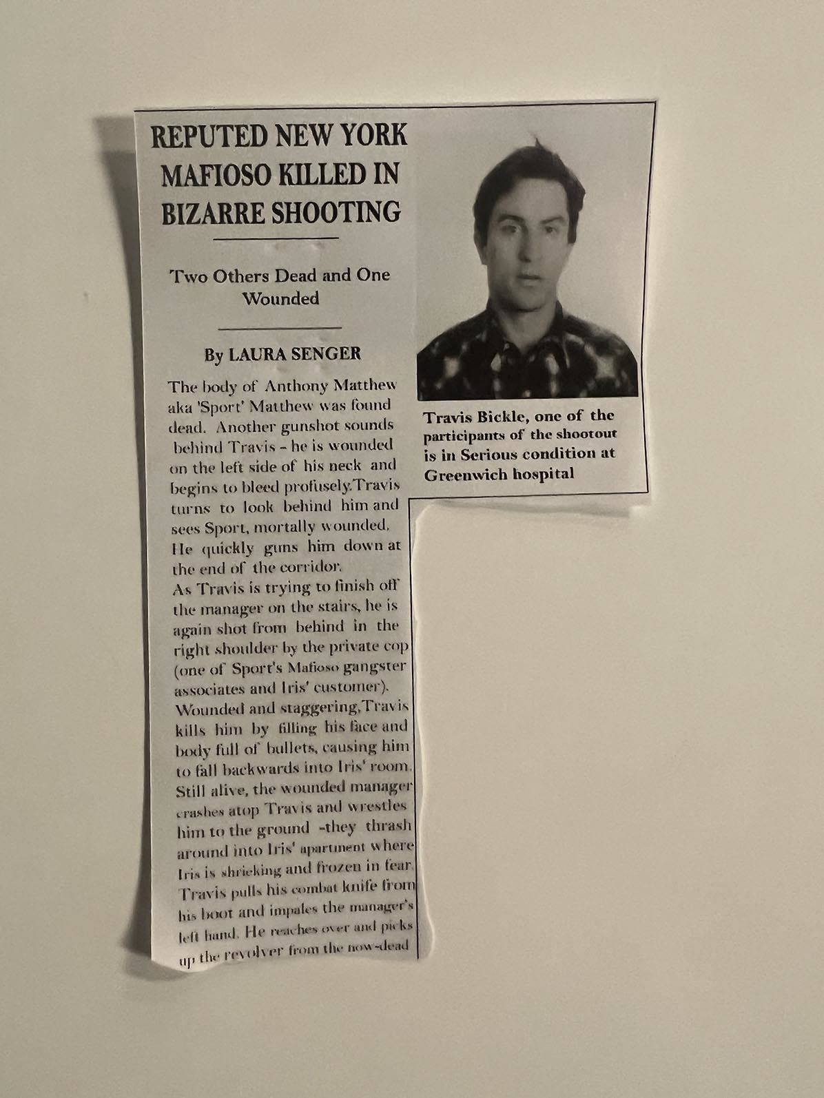 Taxi Driver Matthew "Sport" Higgins prop newspaper clipping. 4x6 inches