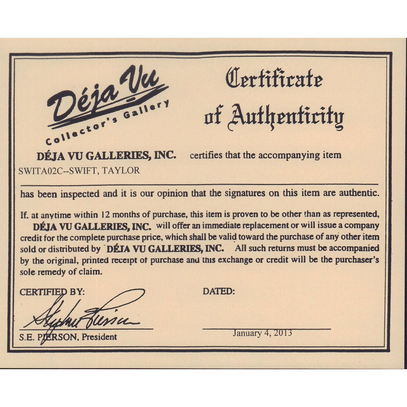 Autographed photo of Taylor Swift from early on in her career. Signature by Taylor Swift on the front in blue marker. Includes certificate of authenticity by Deja Vu Collector's Gallery. #taylorswift #fearless #autograph
