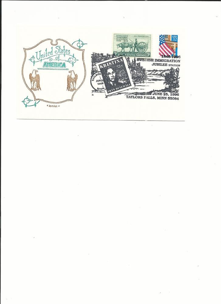Taylors Falls, Minn. - Swedish Immigration Jubilee - First Day Cover - June 25th 1996