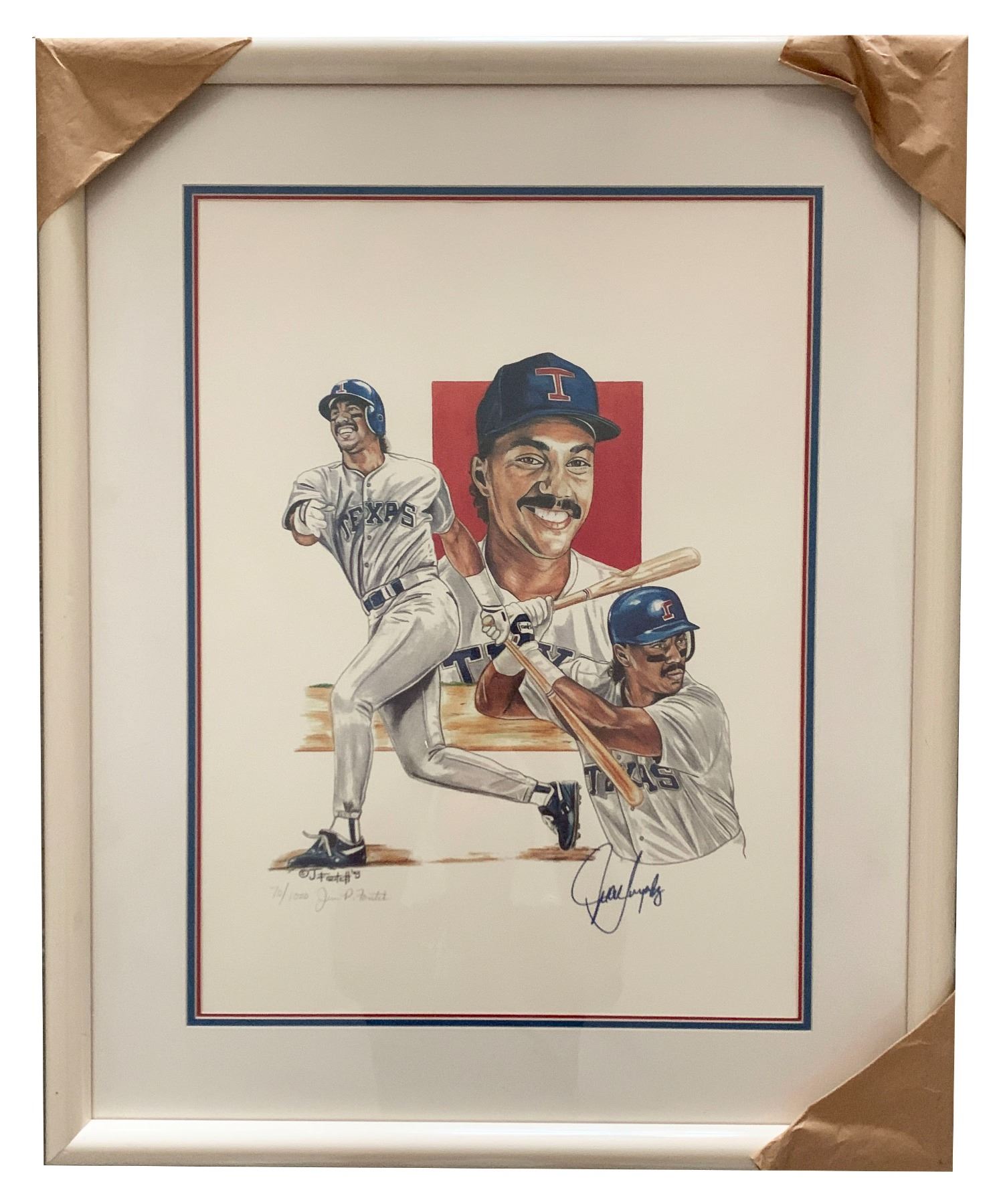 Texas Rangers Juan Gonzalez signed lithograph. Custom matte, framed 26x32 inches