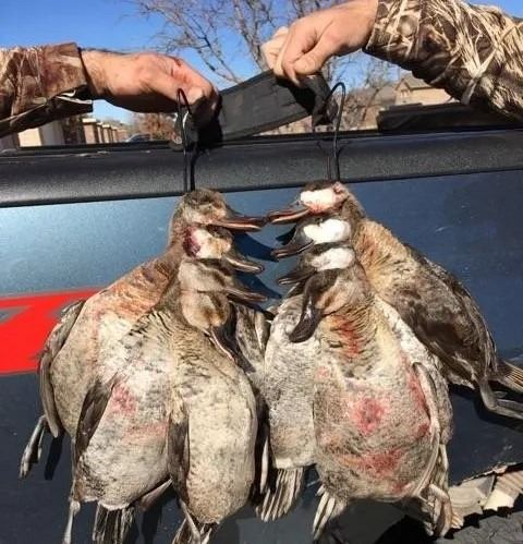 Typically, we hunt out of layout blinds or a frame style brushed blinds along irrigation turrets or ditches (“There ain’t much to hide behind in West Texas”).