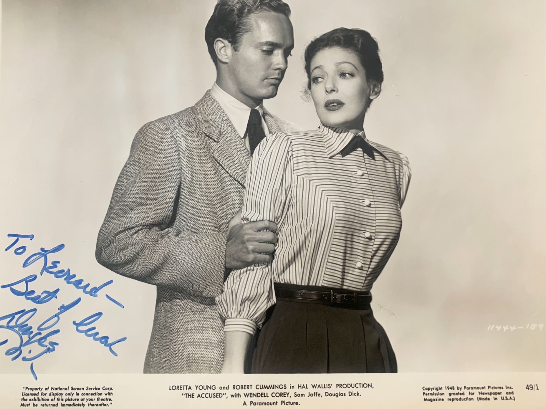 The Accused signed movie photo autographed by Douglas Dick. 8x10 inches