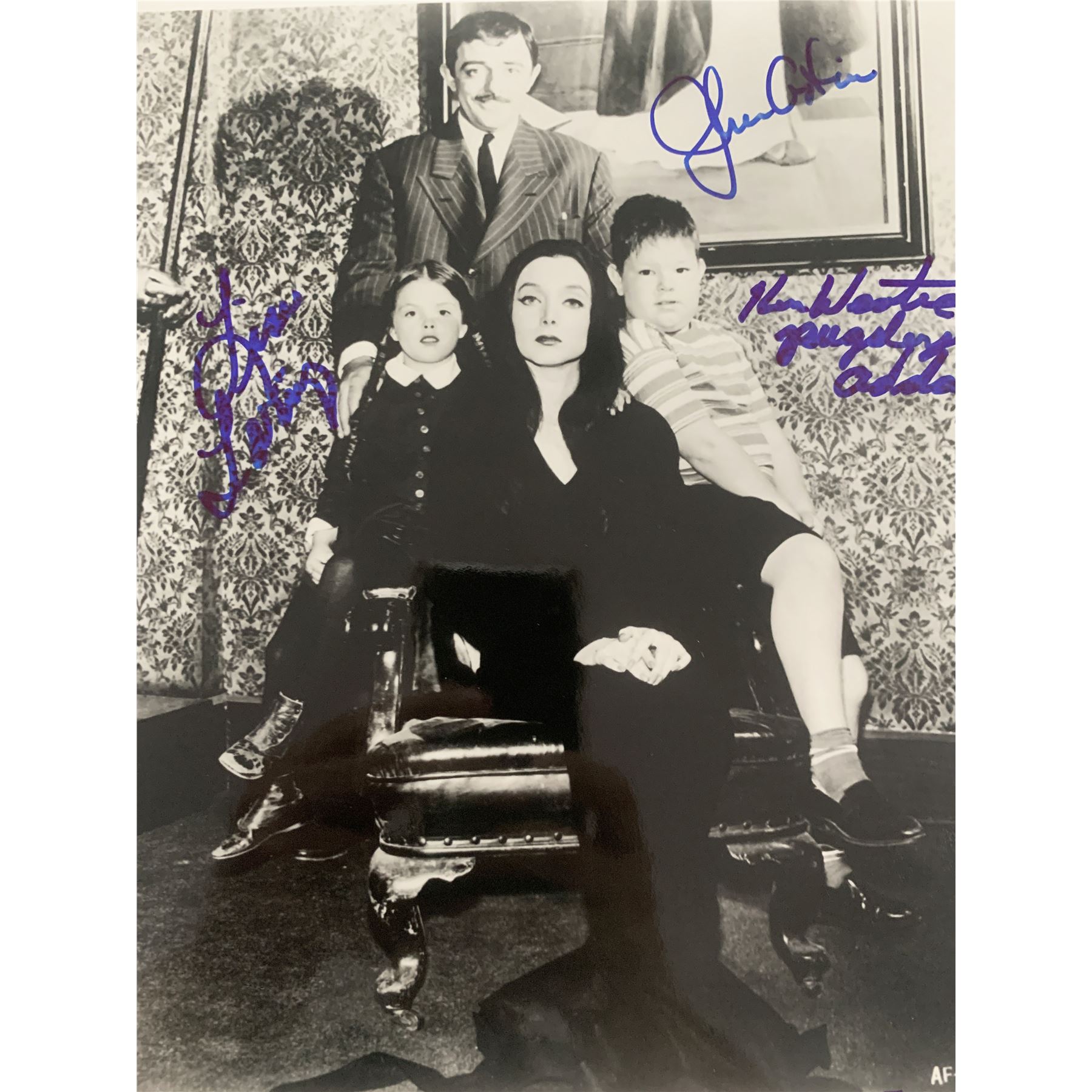 The Addams Family cast signed photo autographed by Lisa Loring, John Astin and Ken Weatherwax. 8 x 10 inches. GFA Authenticated