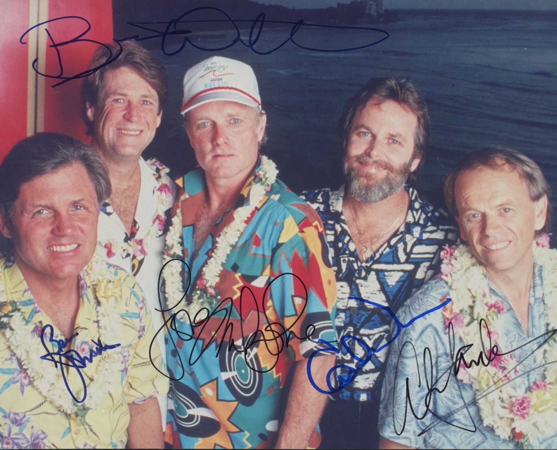 The Beach Boys signed photo autographed by Brian, Dennis, and Carl Wilson, their cousin Mike Love, and their friend Al Jardine.