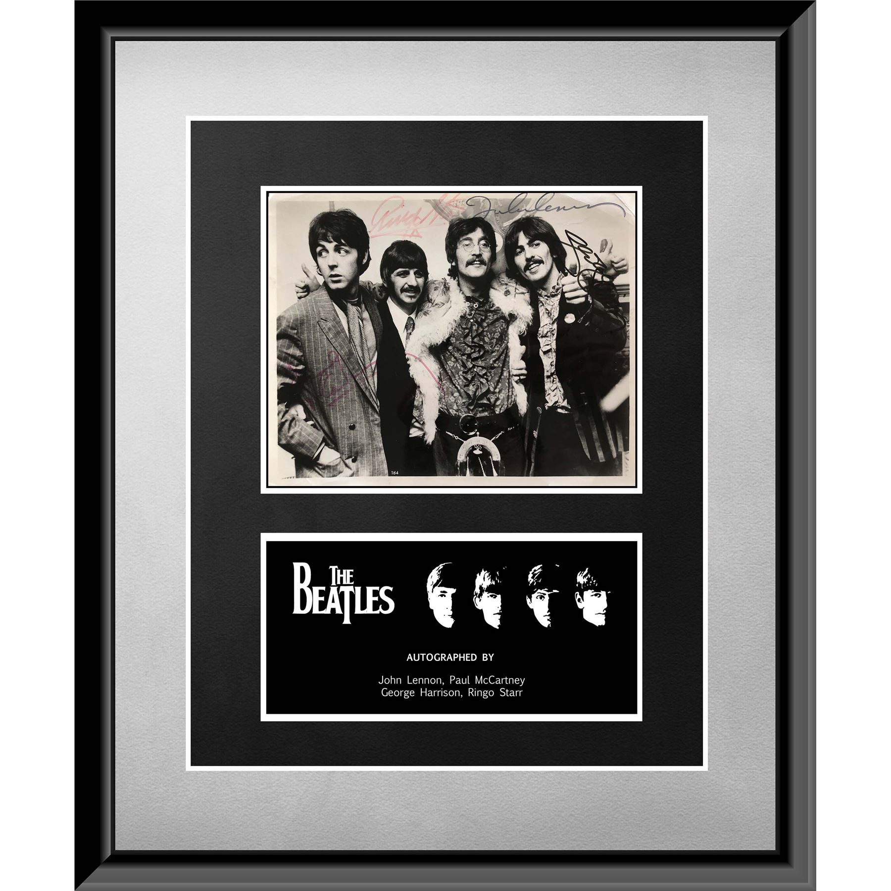 The Beatles band signed photo autographed by John Lennon, Paul McCartney, George Harrison and Ringo Starr. 18x22 inches