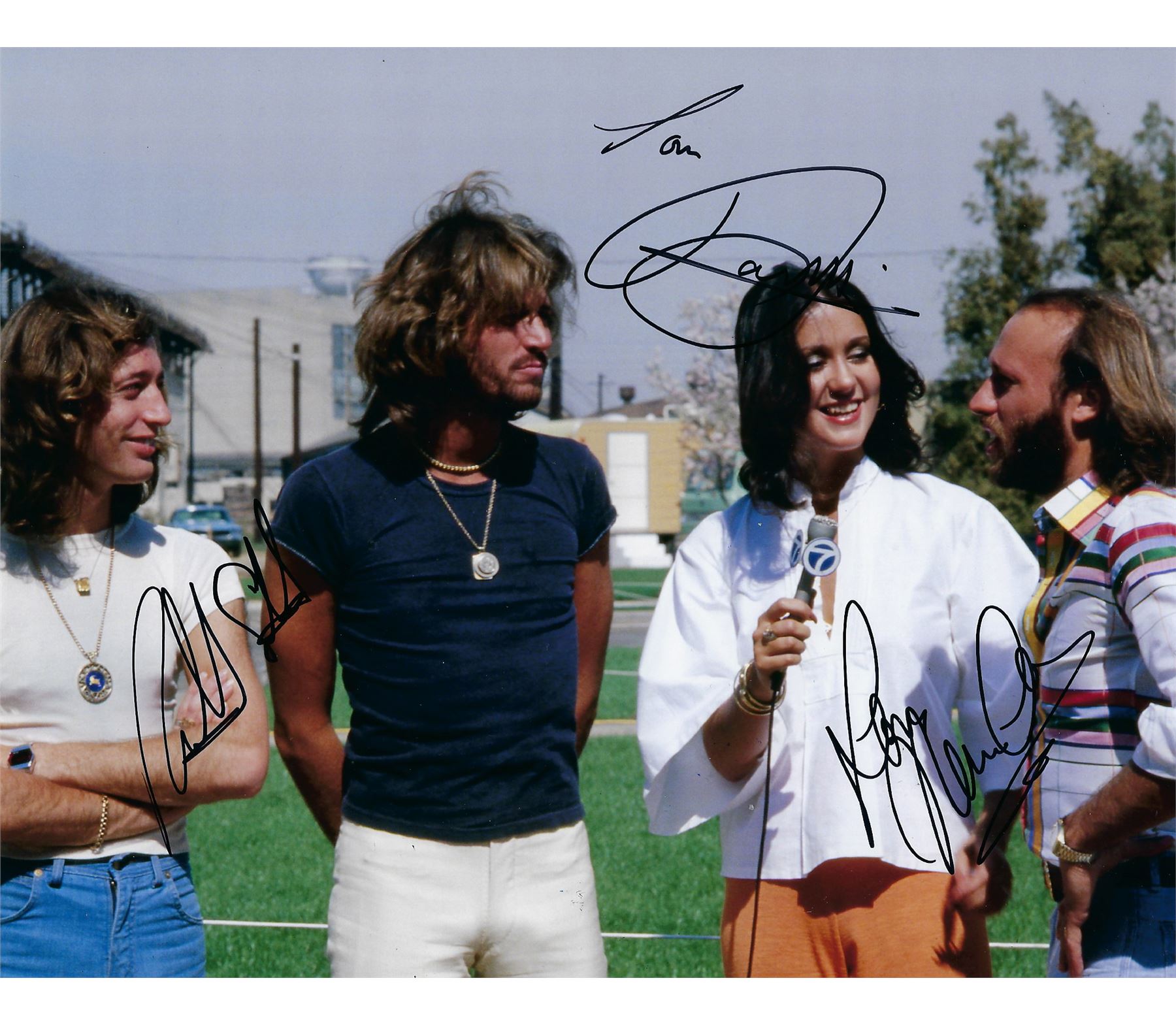 The Bee Gees signed photo autographed by Barry Gibb, Robin Gibb and Maurice Gibb. 8x10 inches